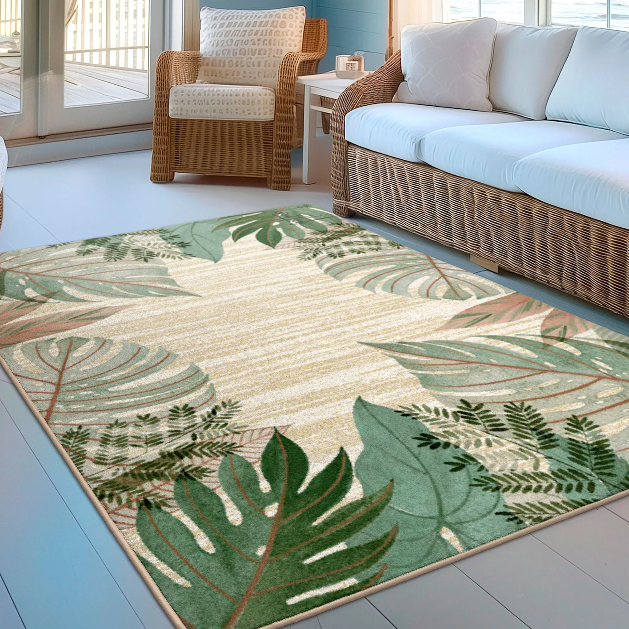 • Classic tropical leaf rug