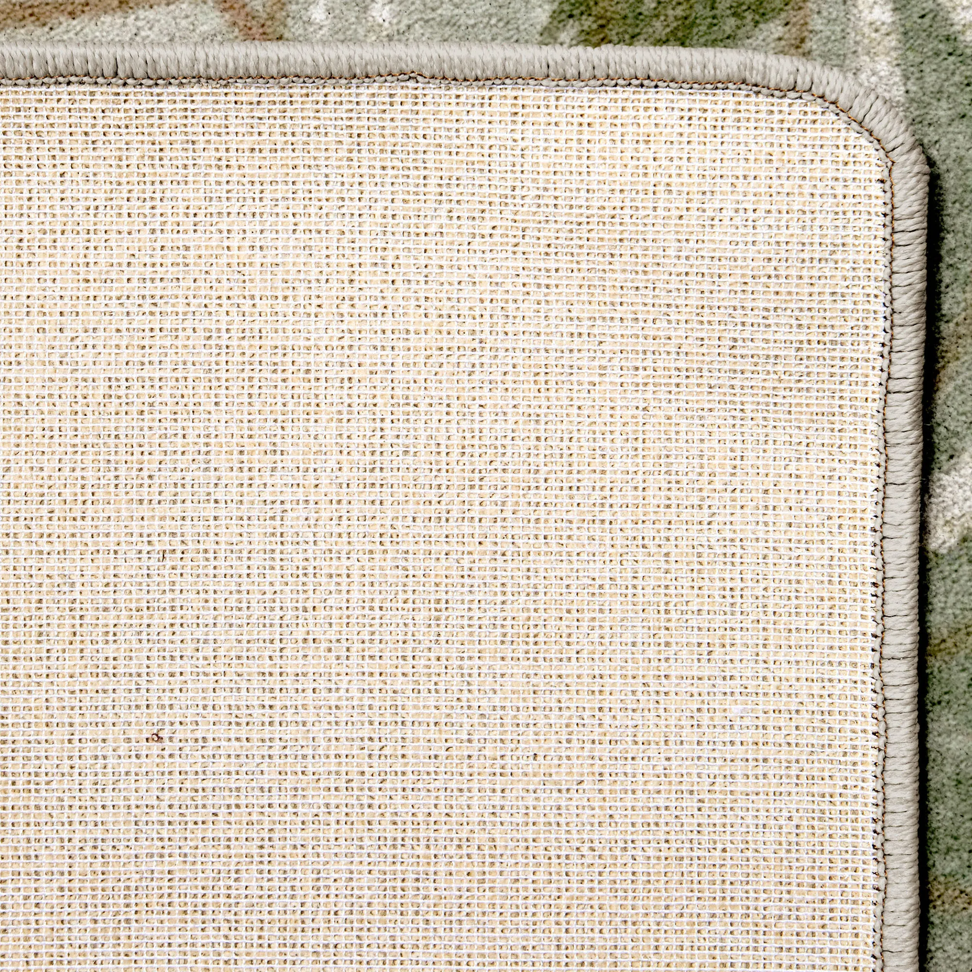 The Tropical Shade Rug is nylon backed in a polypropylene/polyester blend. Made in the USA.