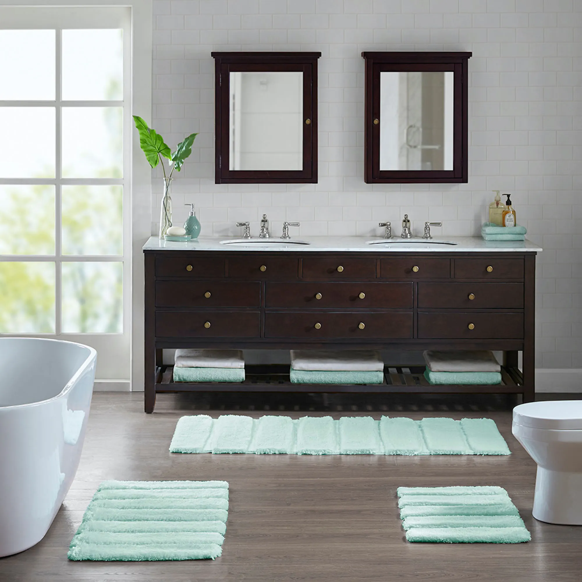Tufted Channel Plush Stain Resistant Nonskid Bath Rugs by Madison Park