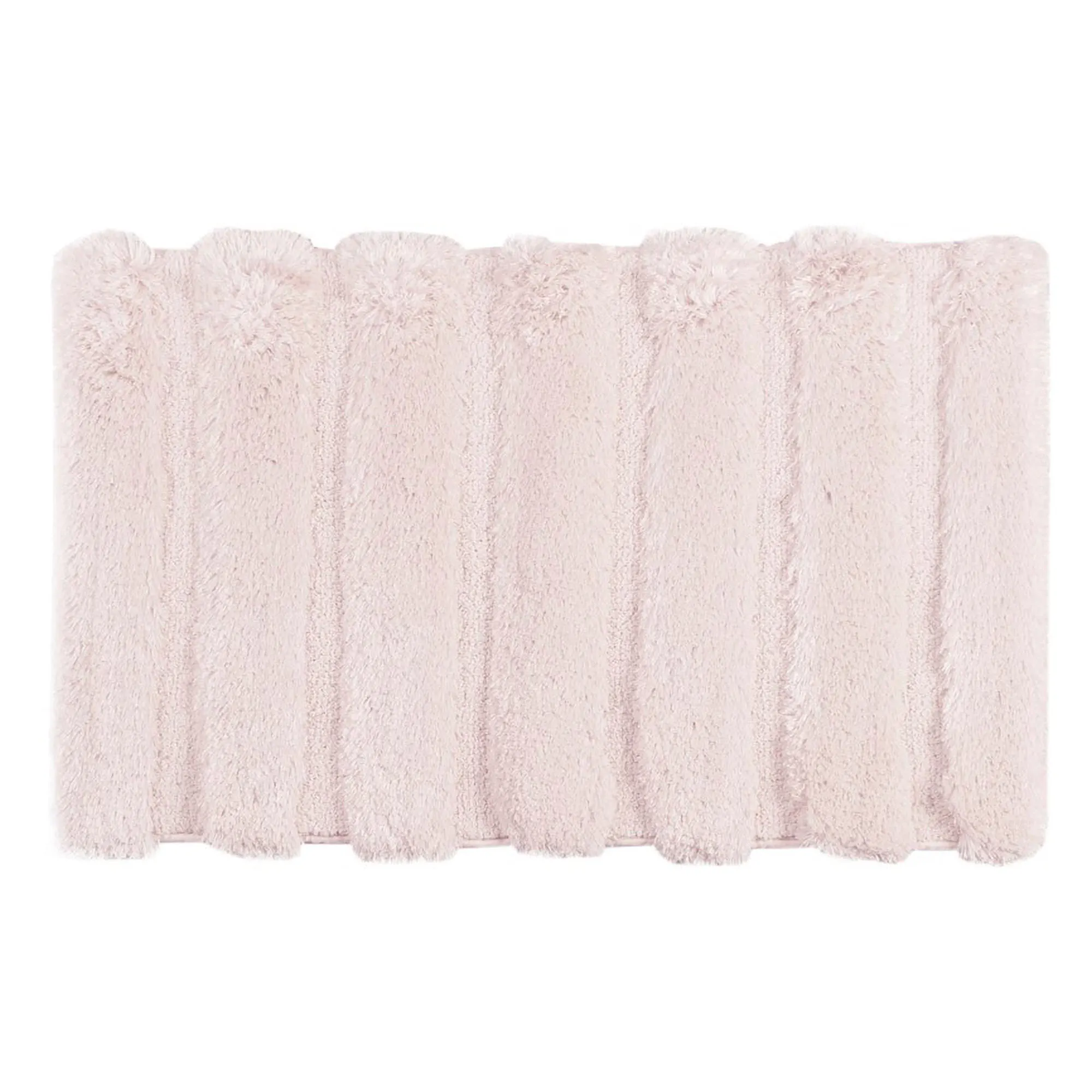 The Tufted Channel Bath Rug is macro-spun polyester backed in nonskid latex. Imported.
