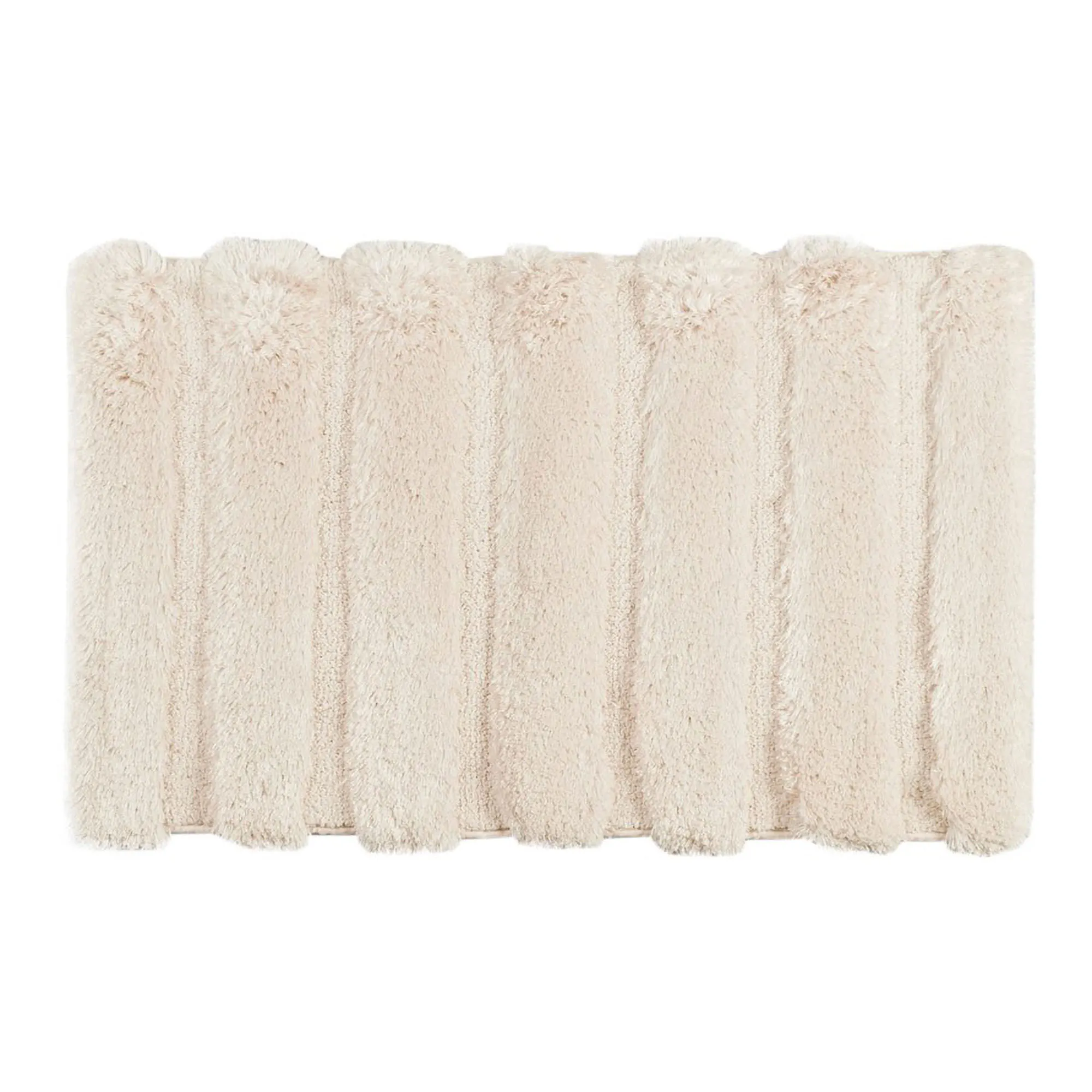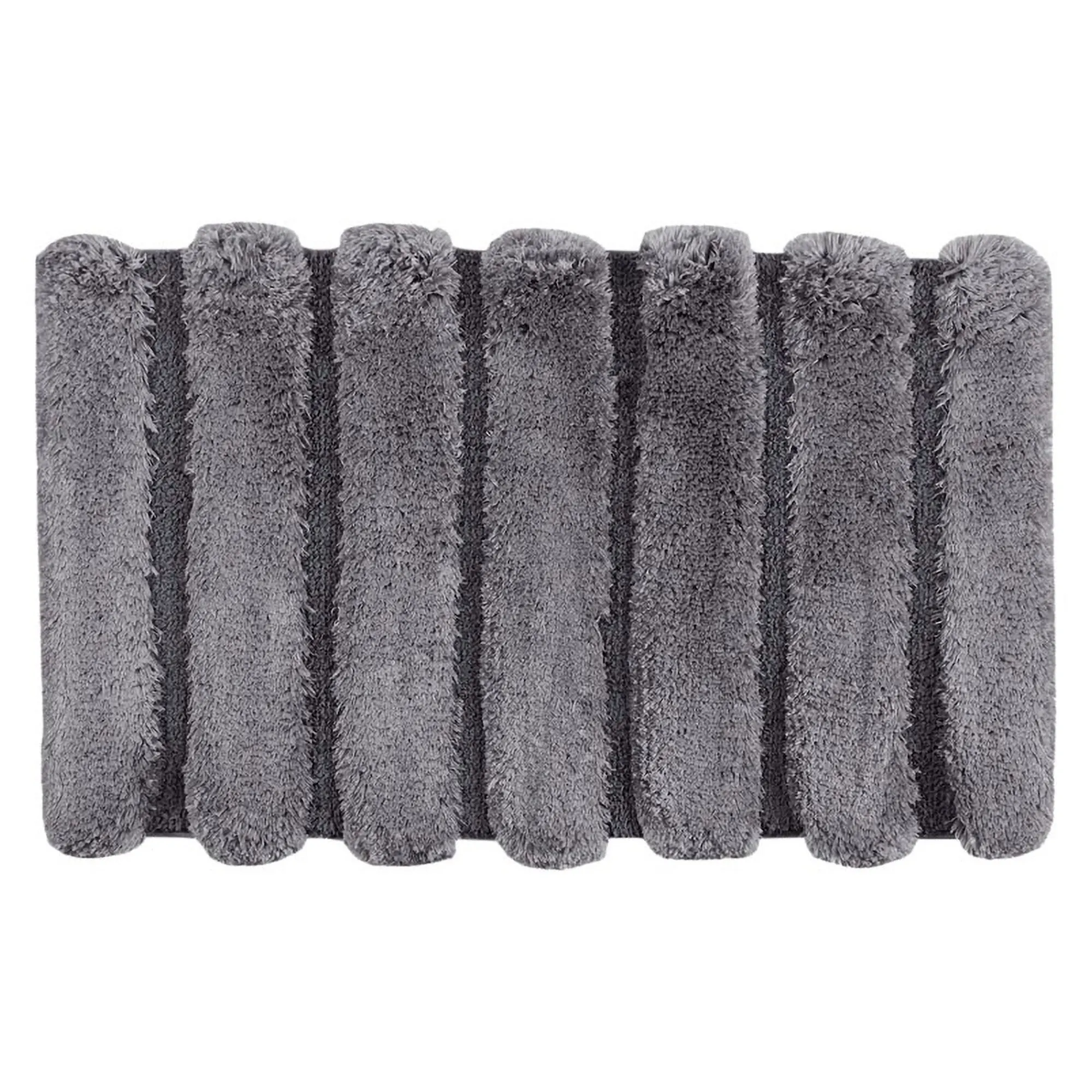 Step onto the rippled look and plush texture of the Tufted Channel Bath Rug. From Madison Park, the macro-spun polyester bath mat features a durable tufted design in a fade- and stain-resistant solid color hue. The high-low stripes offer a slight luster and alternate from a .25" thick to a 1" thick pile. Backing is nonskid latex. Machine washable. Imported.