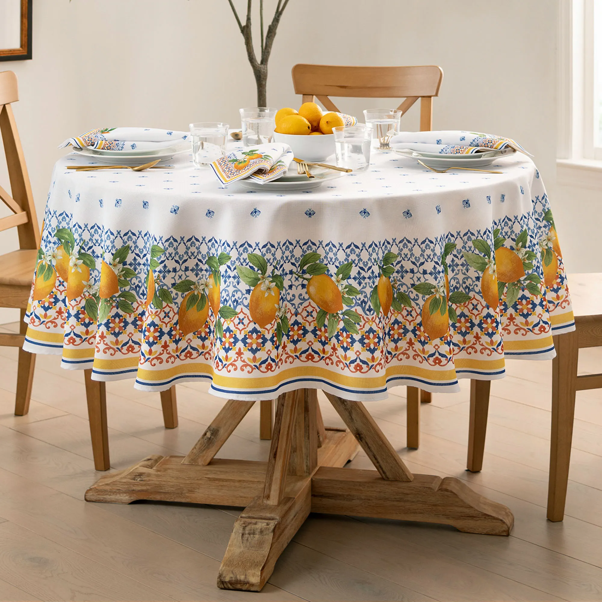 • Lemon table linens are machine washable