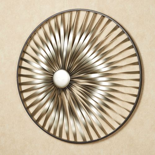 The Twirl Revelation Round Metal Wall Sculpture shimmers dazzlingly as it draws you in with its unique pattern. Circular metal wall sculpture features twisted ribbons emanating from an off-center location in a champagne gold finish. Wall art measures 30" dia.