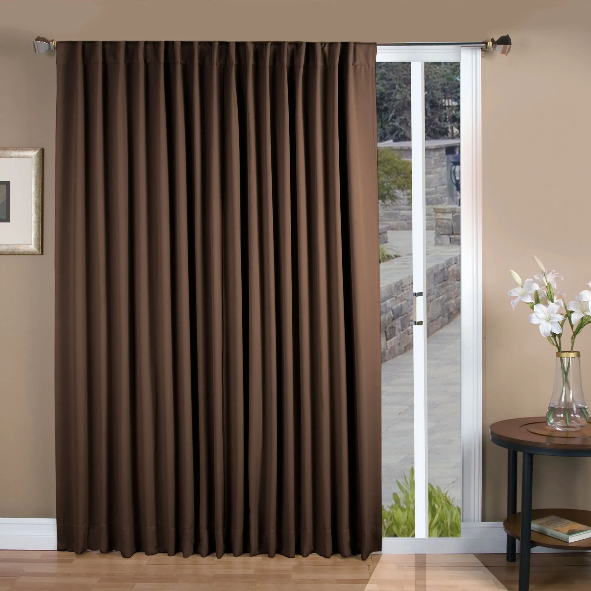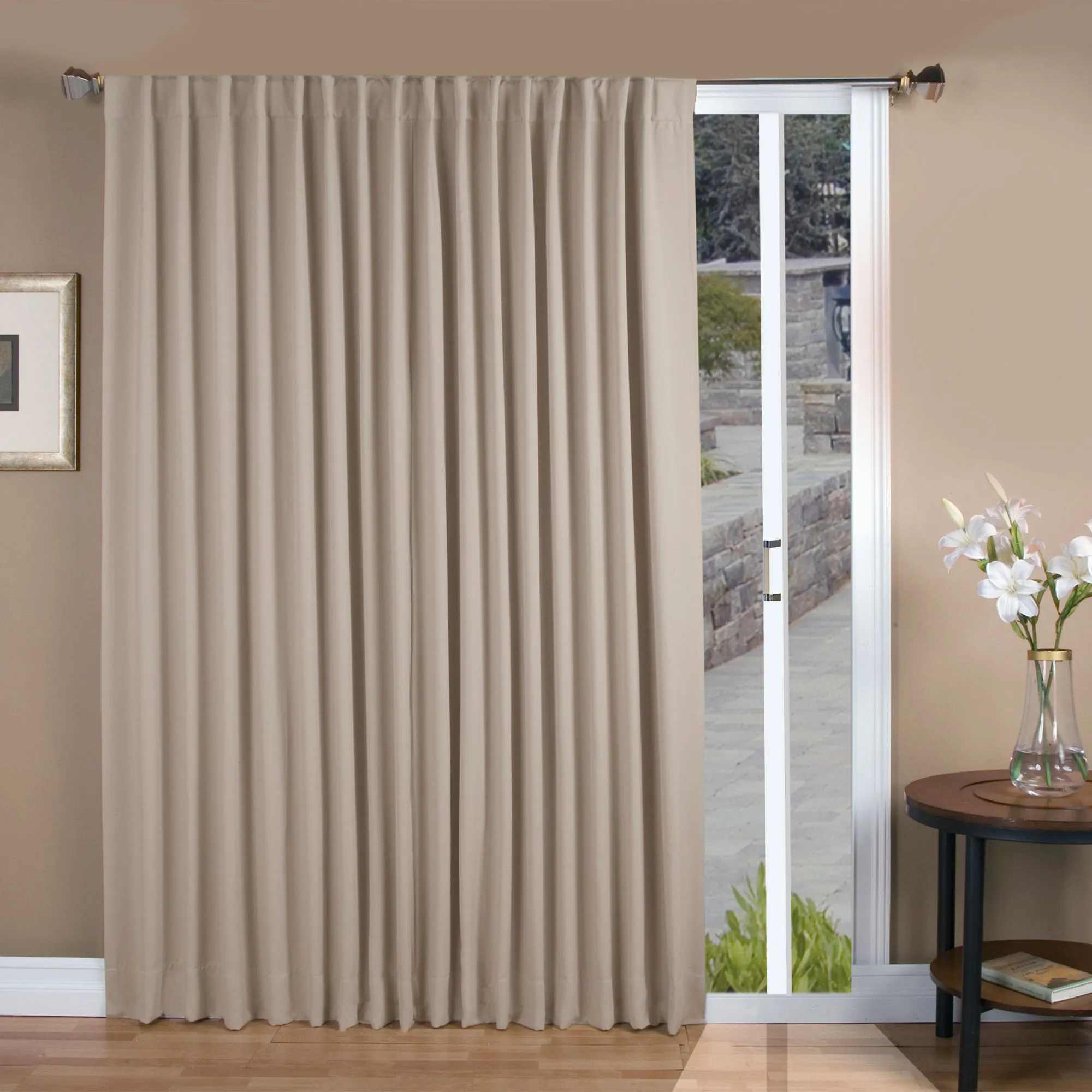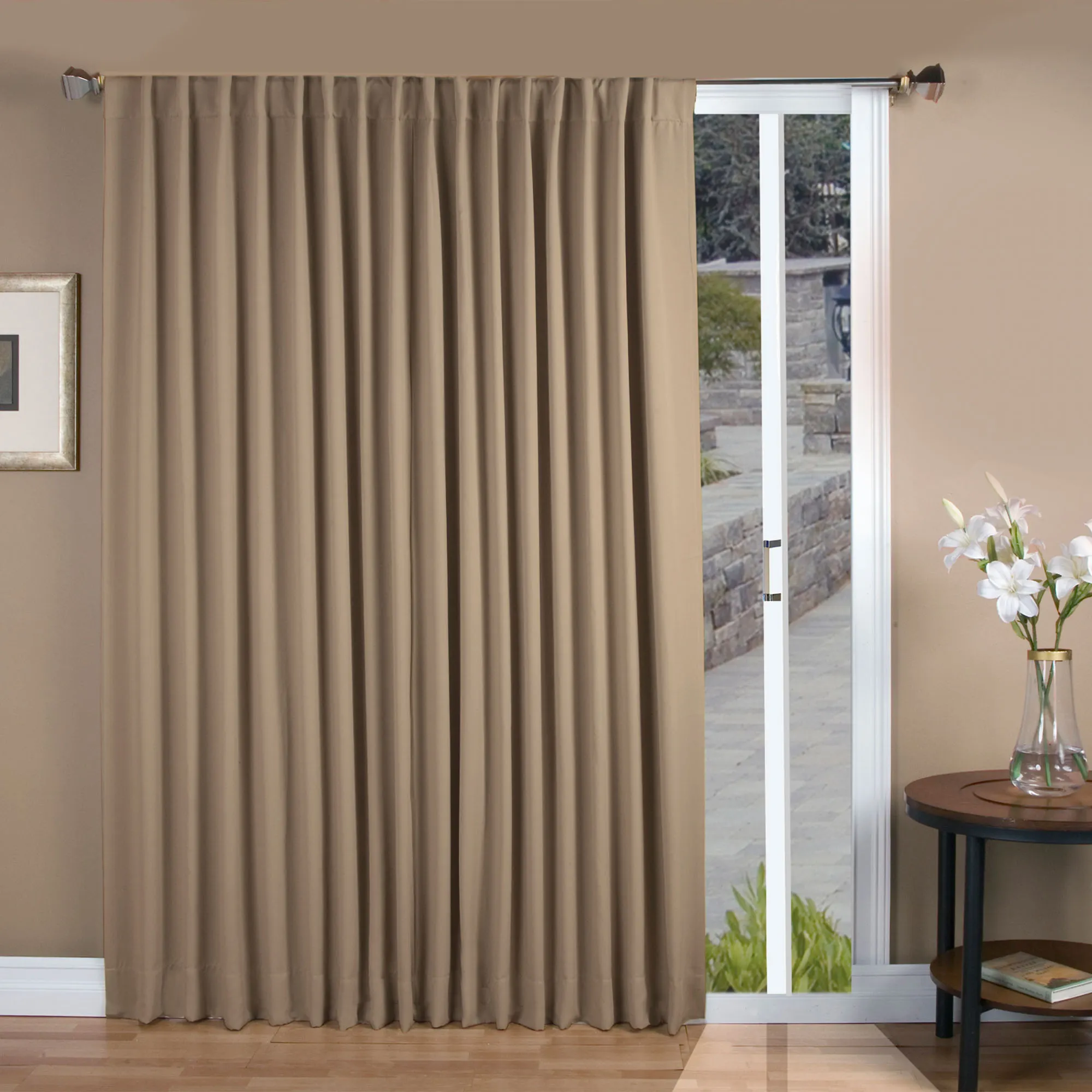 The Ultimate Blackout Back Tab Patio Panel is polyester. Imported.