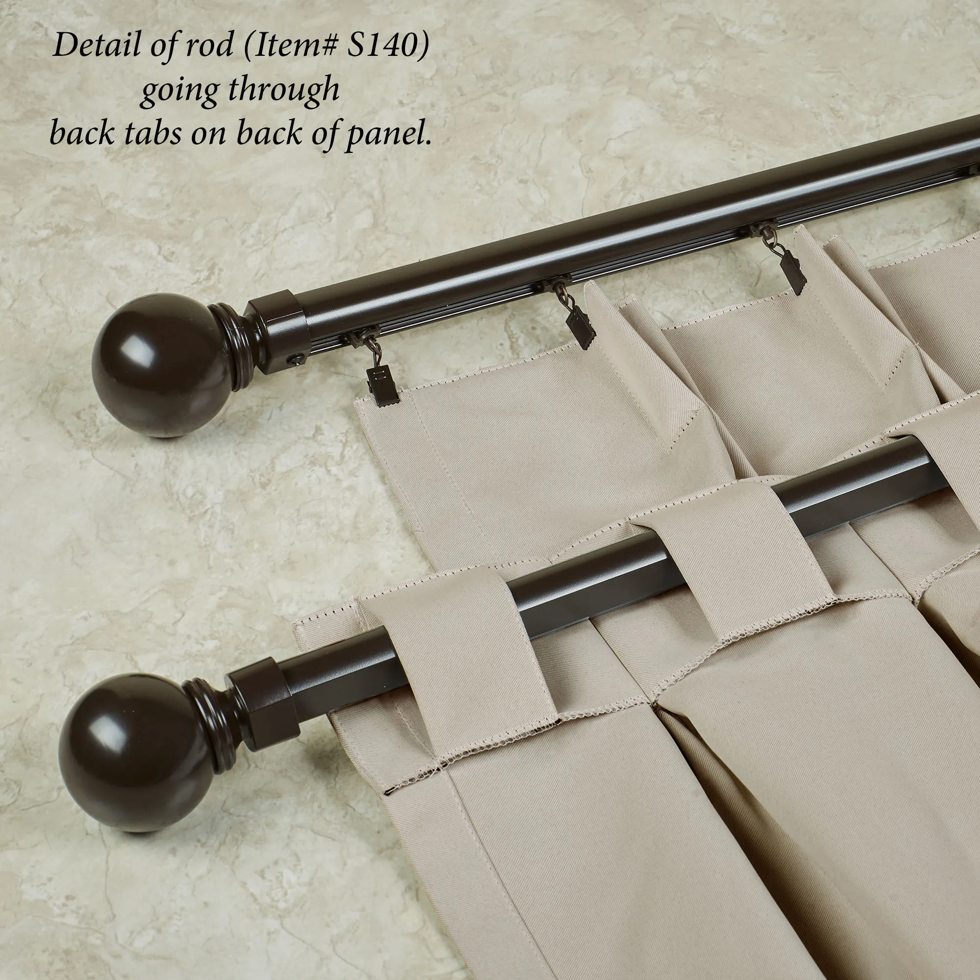 Any decorating style can be coordinated with the Ultimate Blackout Pinch Pleat Window Treatment. These polyester curtains are woven in three layers using a tight weave of colored yarns on the front and back, sandwiched around an inner layer of black yarns to help reduce noise. The energy-efficient fabric is thick and dense, blocks drafts, and helps to maintain a room's temperature. Pinch pleat curtains have a dual header and can be hung with your drapery hooks, drapery pins, clip rings, or the hidden 3.5"L back tabs. Click on the Details tab for more information regarding hanging requirements and measurements. Curtains are sold as a pair and measure 84"L. Machine washable. Imported. The curtain pair width is the total width of two panels together.