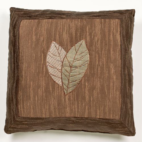 Slub textured colors and iridescent leaves combine on the Urban Leaves Embroidered Decorative Pillow for a nature-inspired accent unlike any other. The polyester pillow features embroidered veined leaves in shades of khaki and jade with a slight sheen on slub textured cocoa, framed by slub textured chocolate tailored edges. Square pillow is 18". Fill is polyester. Spot clean. Imported.