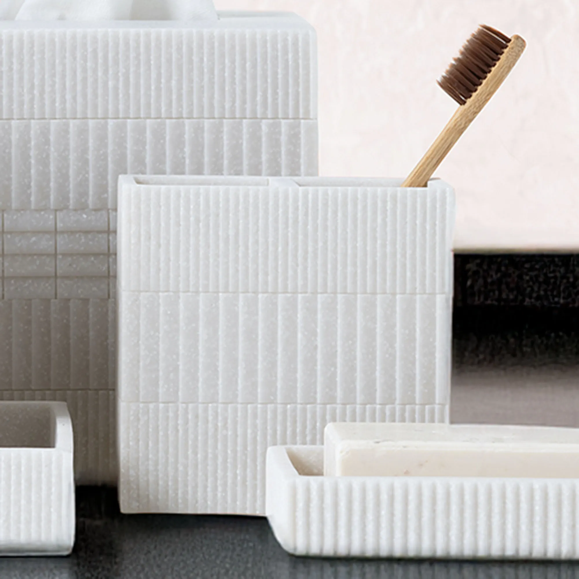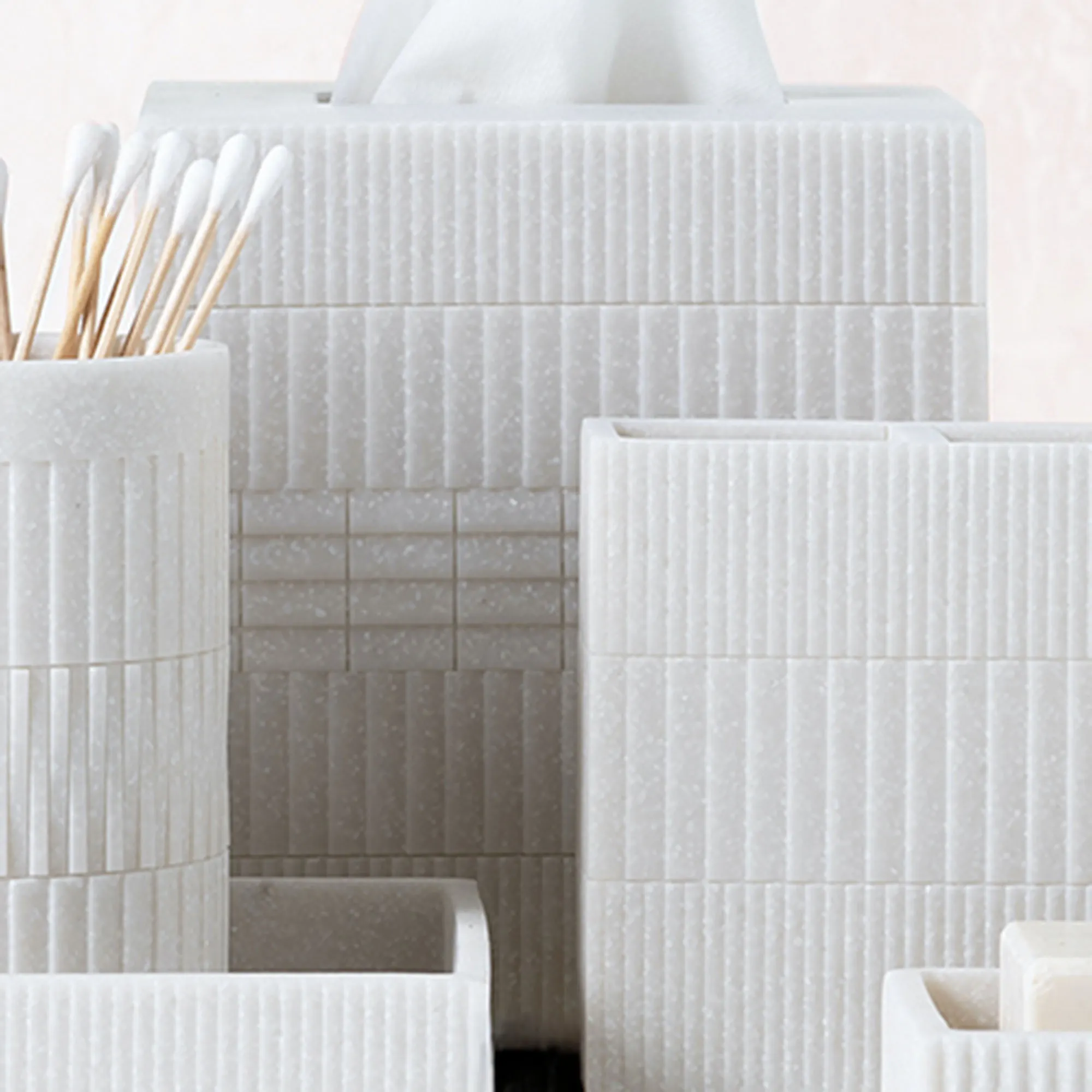 Urbano Ivory and White Flecked Resin Geometric Bath Accessories