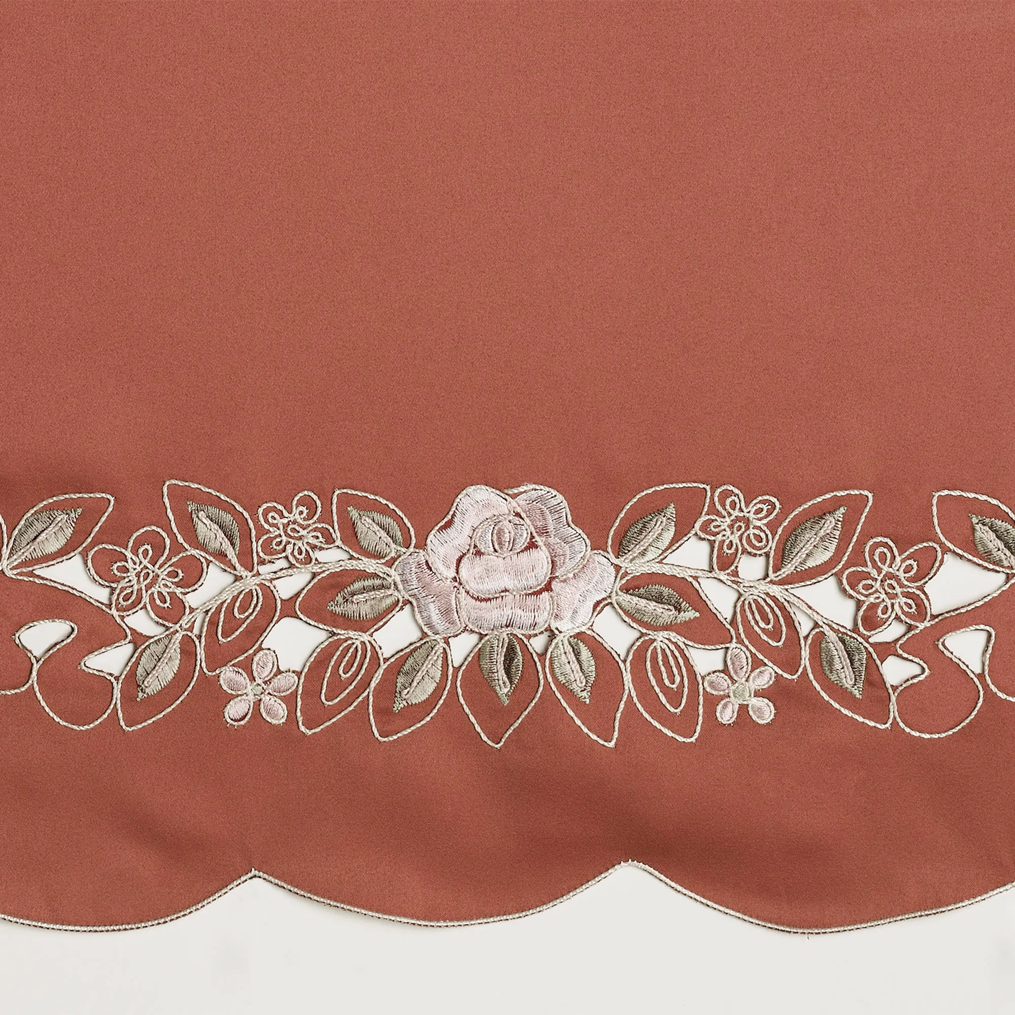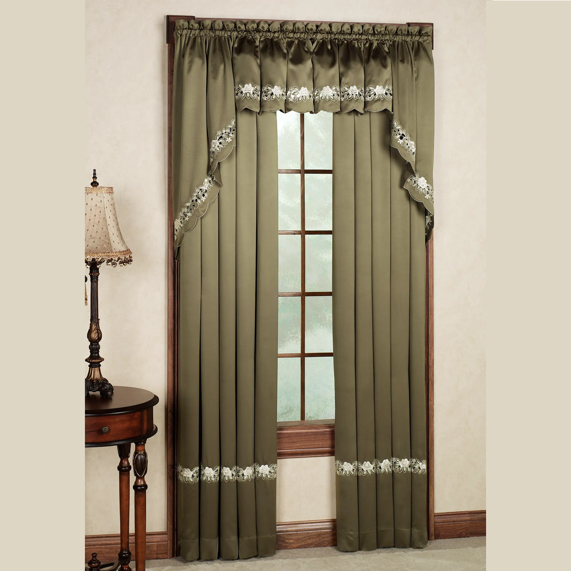 Valencia Embroidered Window Treatment is polyester faux silk. Imported.