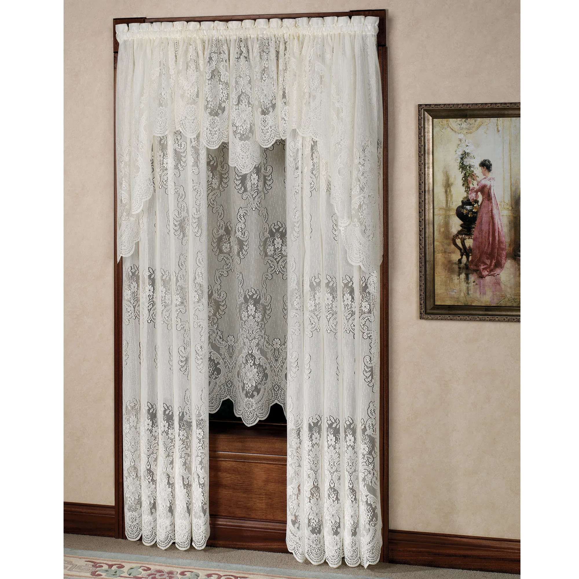 These lace panels replaced old, lined cotton valances that covered approximately the top third of our guest bedroom windows. Immediately after hanging the lace panels we noticed that the room seemed much larger and was very much brighter! They exactly match the lace panels in the bedroom across the hallway, bought from you years ago. Same quality product, a reasonable price and a beautiful upgrade for our guest bedroom!
