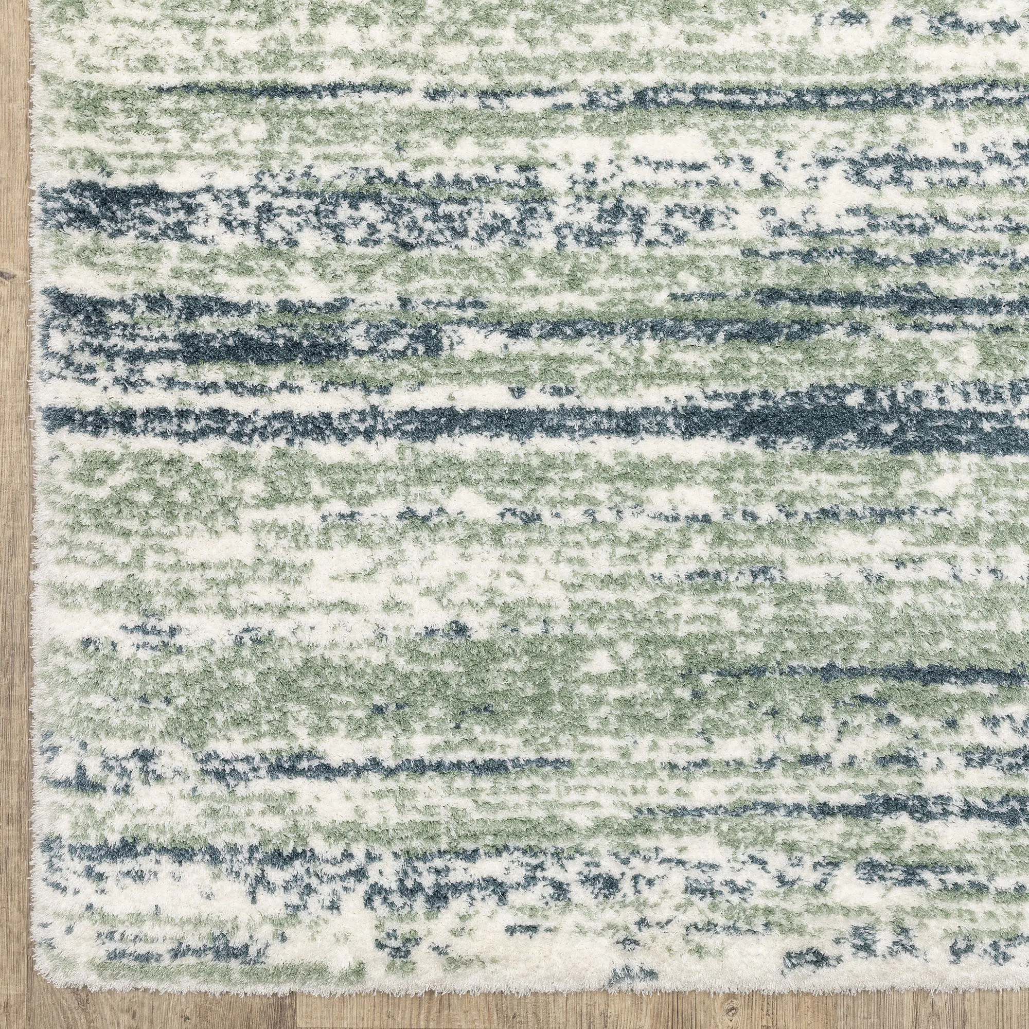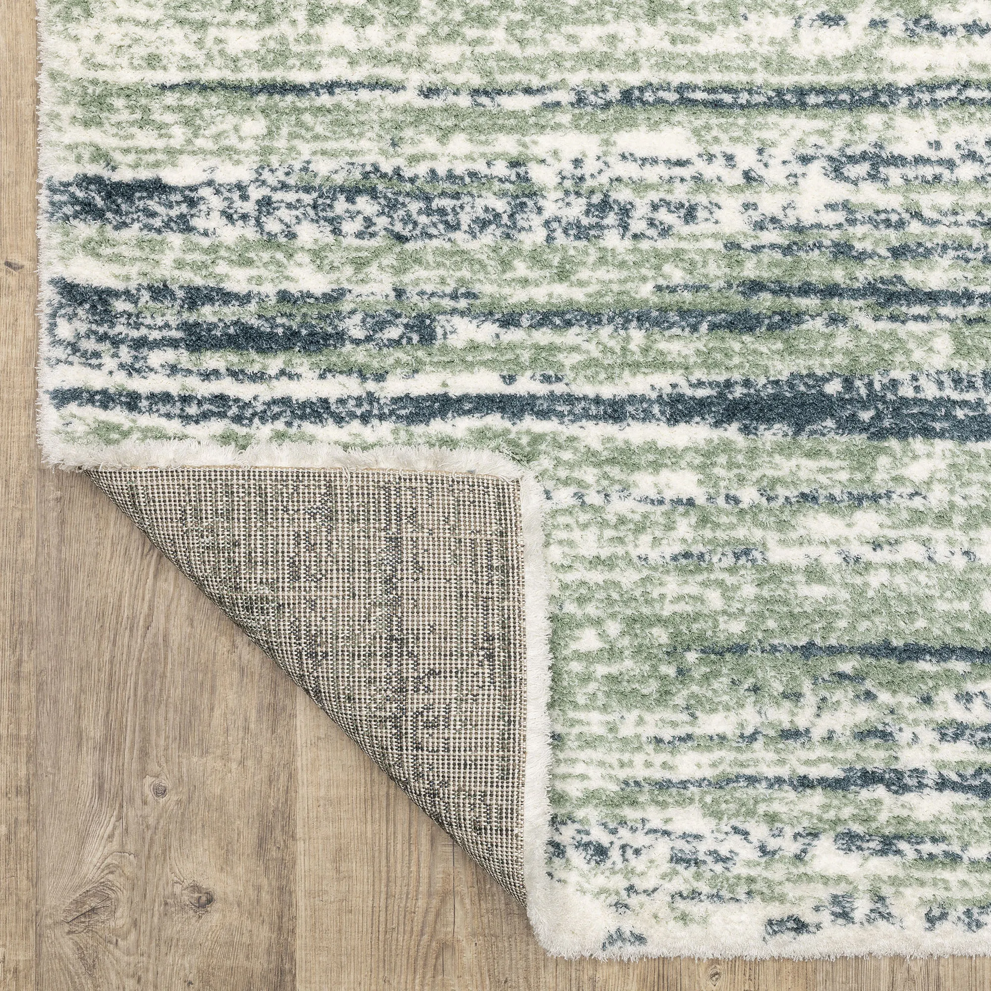 Decorate with the super-soft stripe pattern of the Verna Sage Rug. Power-loomed polyester microfiber area rug, .98" thick, has a dense pile and features a minimalist design. The sage coloration includes hues of ivory, sage, and blue. Backing is woven polyester. We recommend professional cleaning by a rug cleaner. Imported.