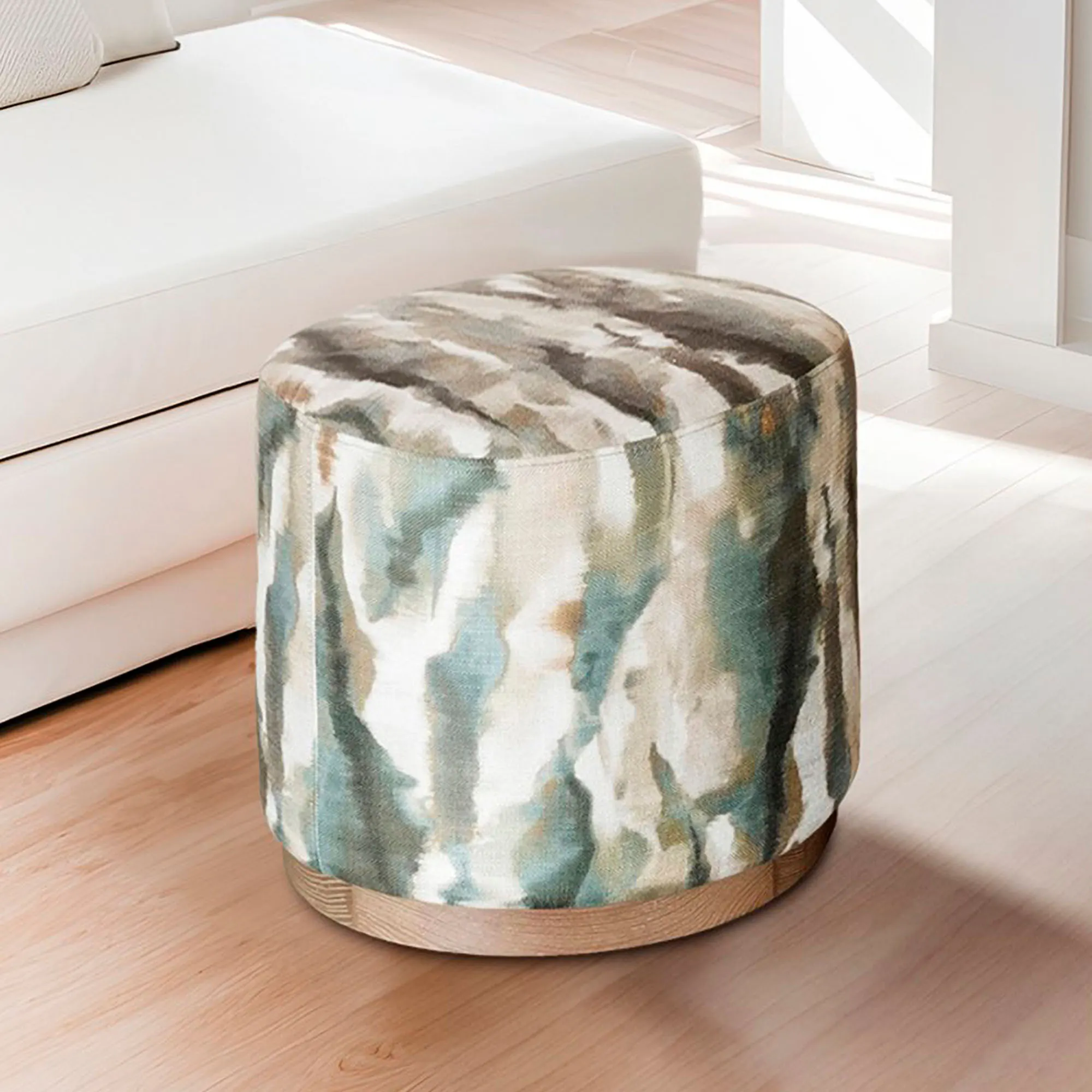 Verona Abstract Watercolor Upholstered Oval Accent Ottoman