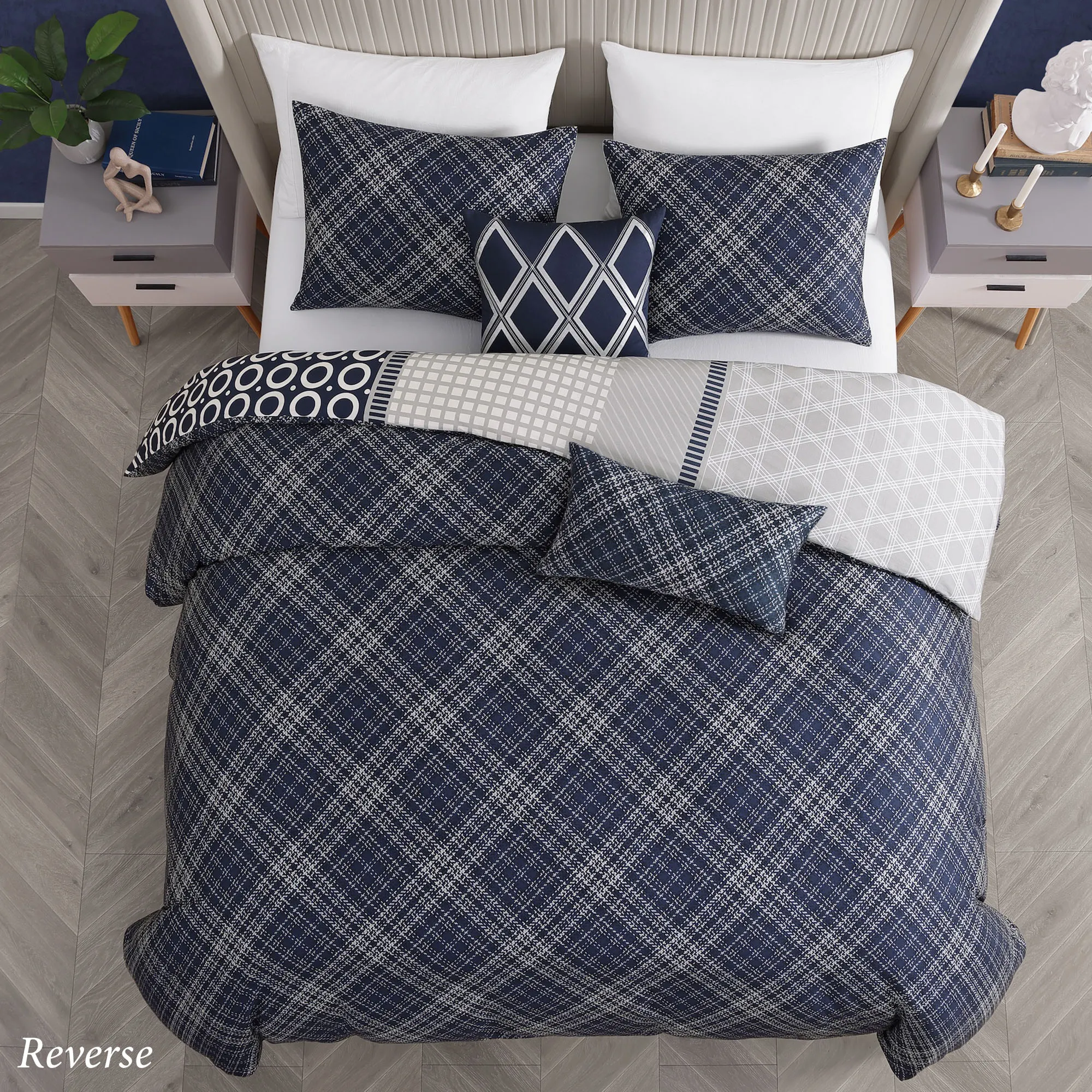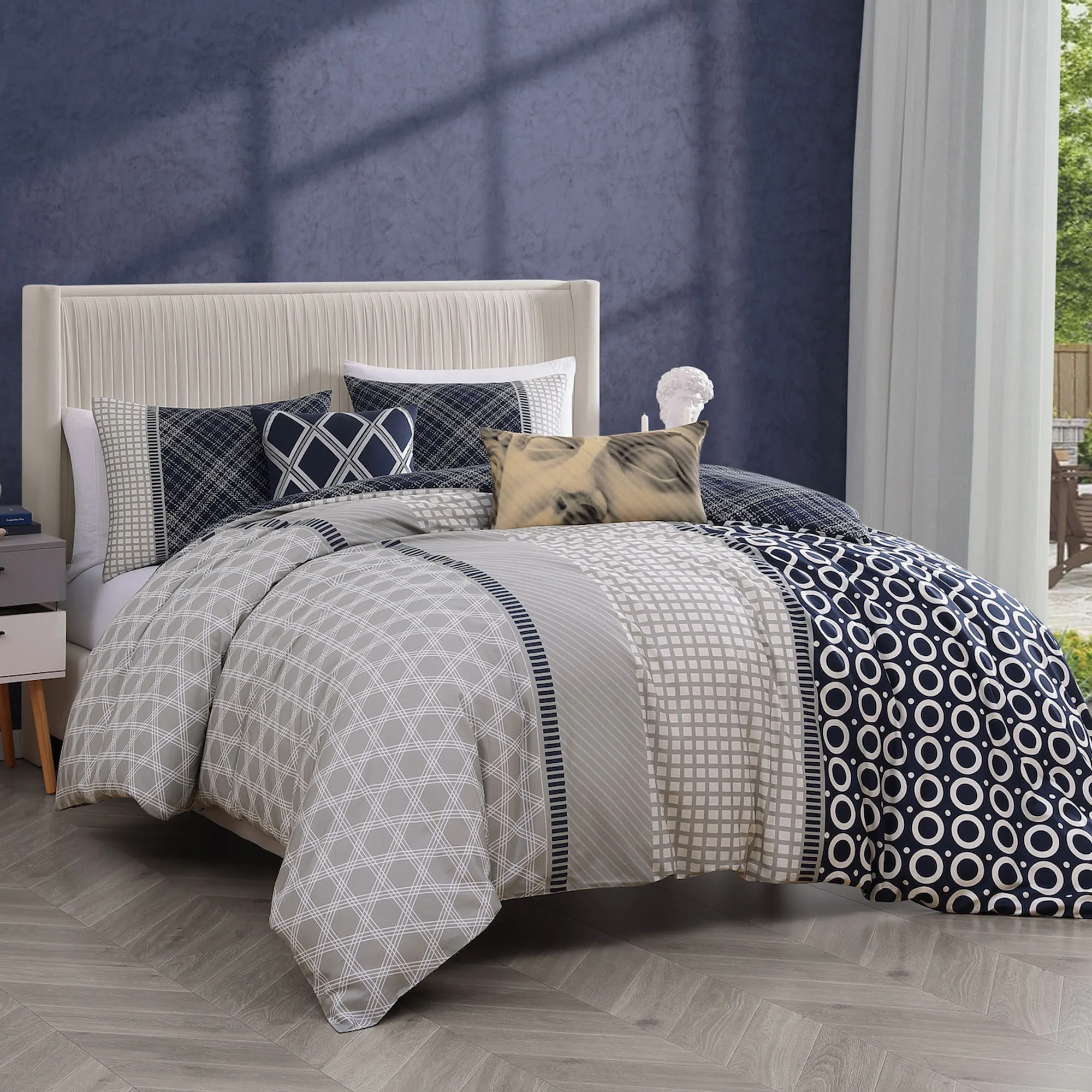 Vertigeo Reversible Geometric Patterned Contemporary 5 pc Comforter Bed Set