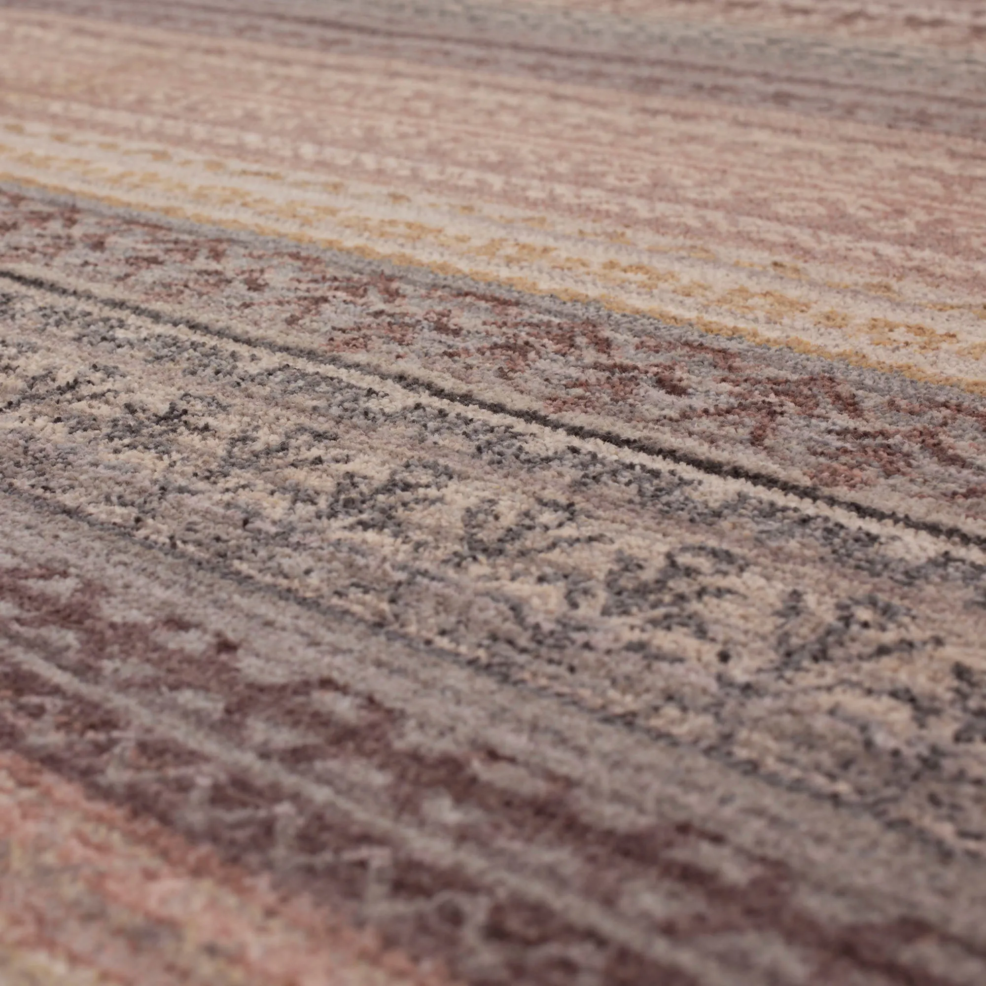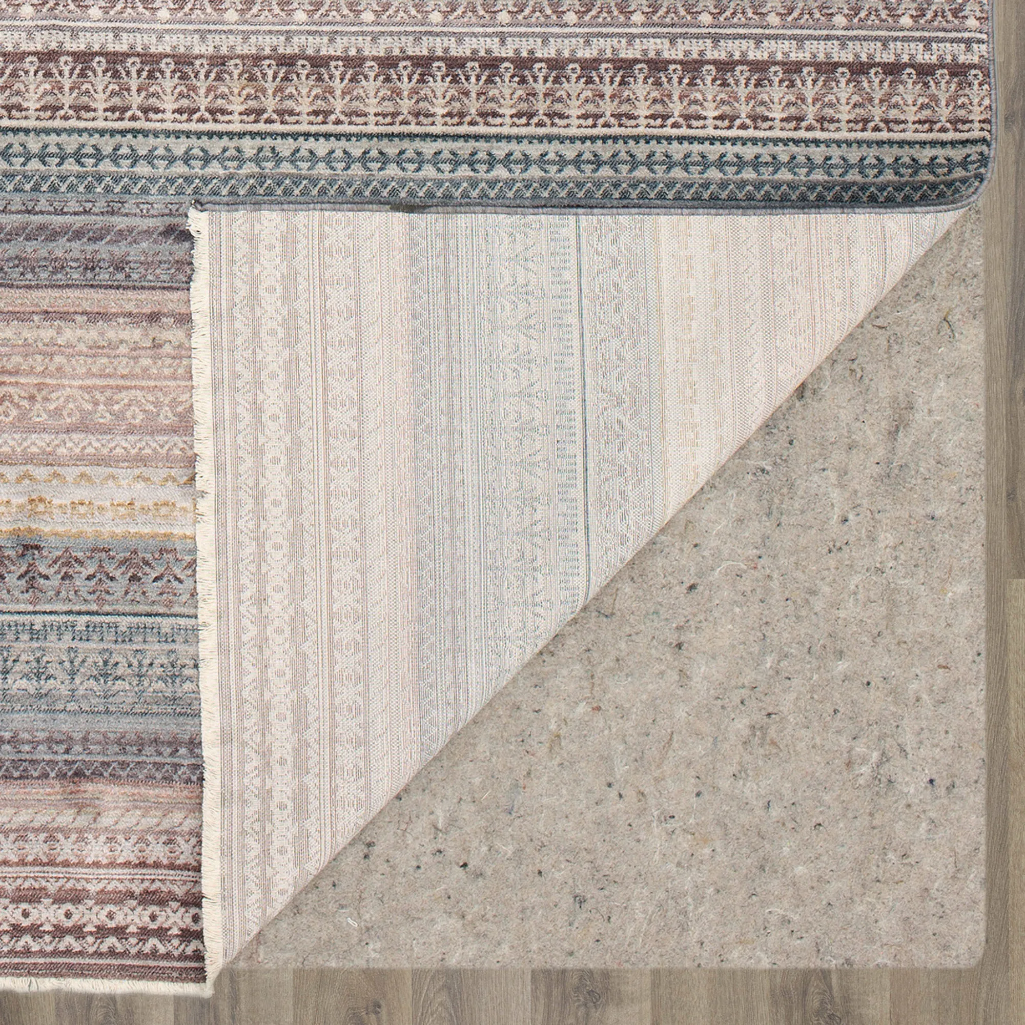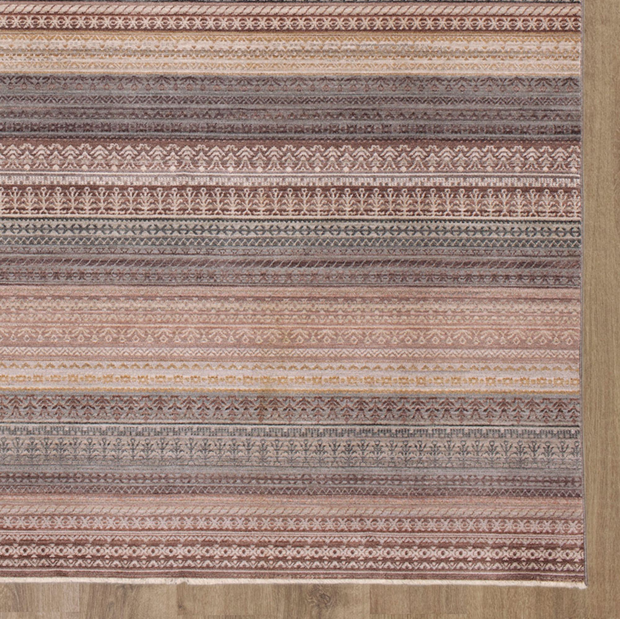 The Victor Striped Rug is polyester with a latex backing. Imported.