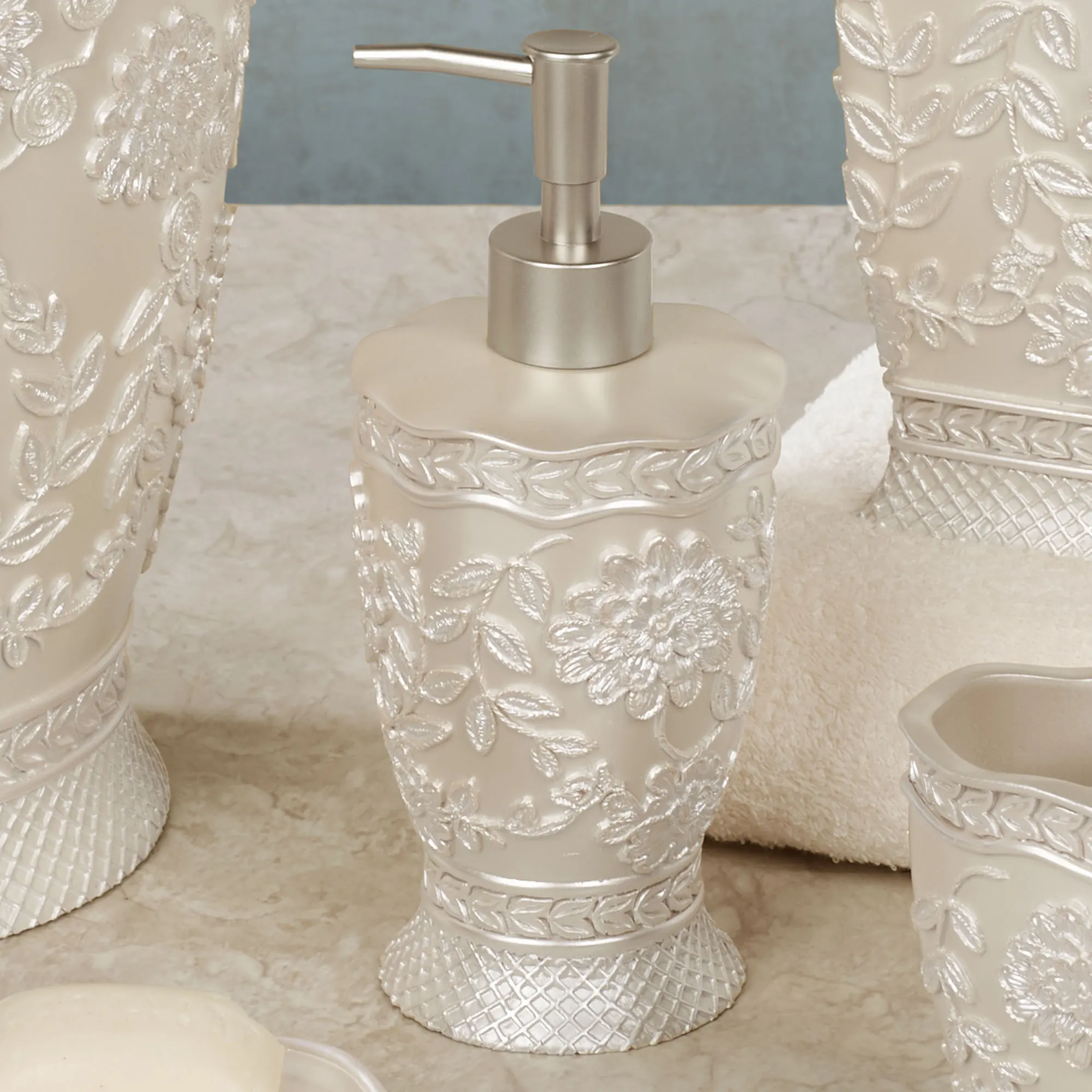 Victoria Pearlescent Floral Champagne Bath Accessories