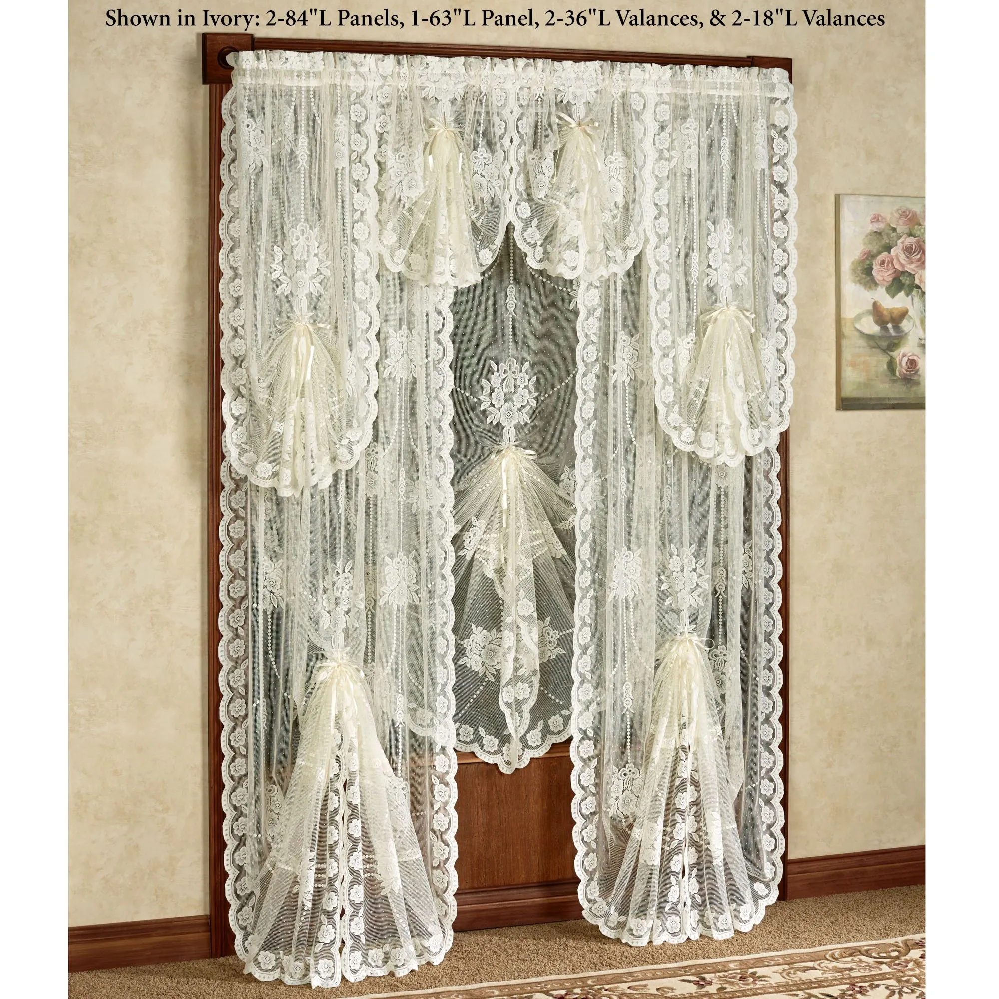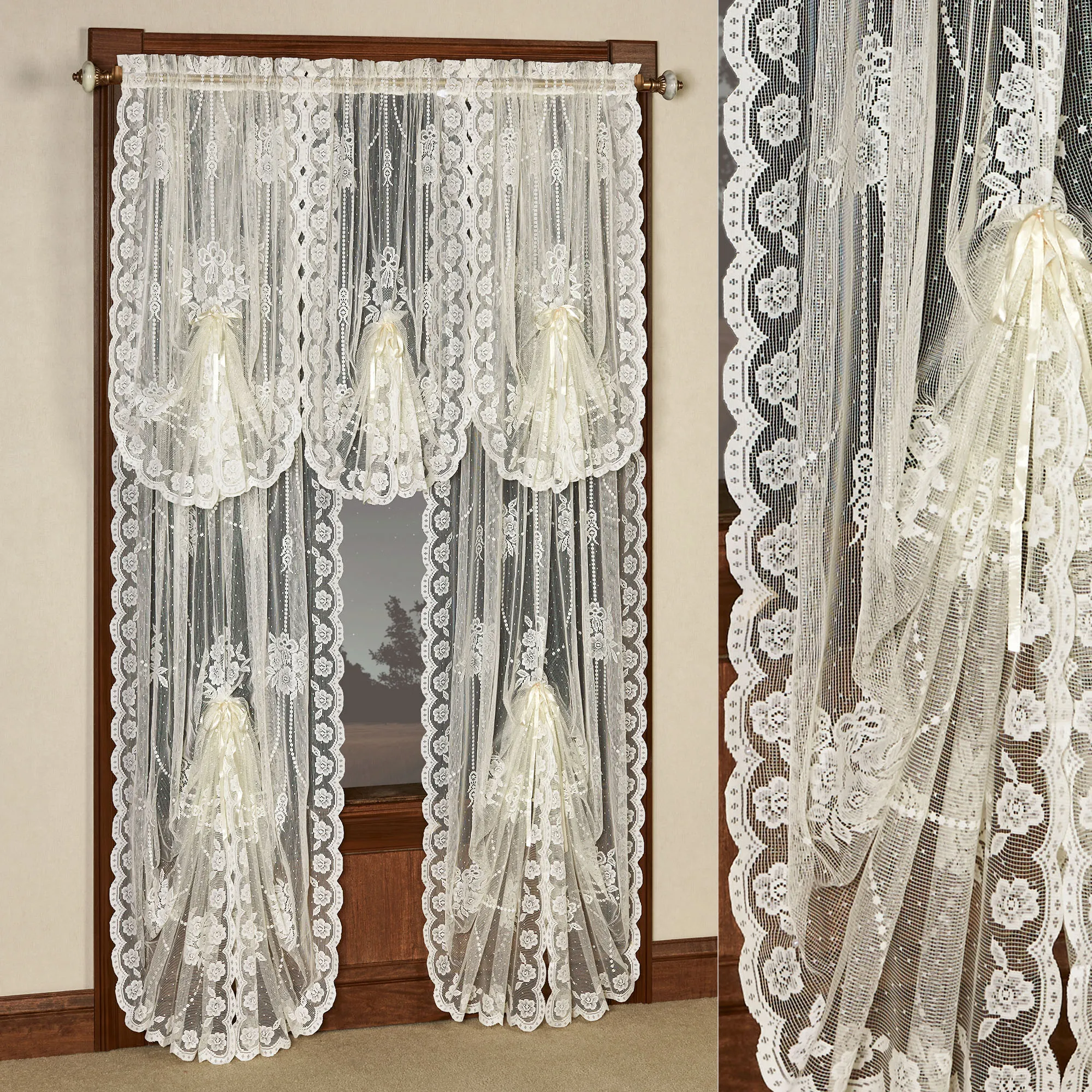 Victorian Bustle Lace Window Treatment is polyester. Imported.