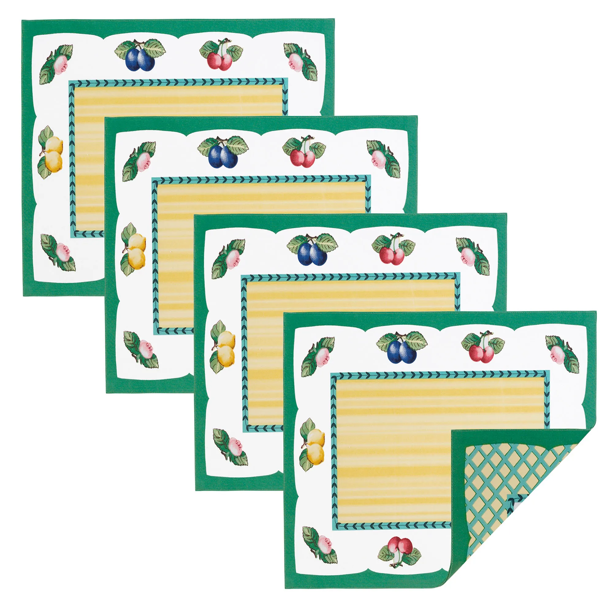 • Placemats and napkins are sold in sets of four