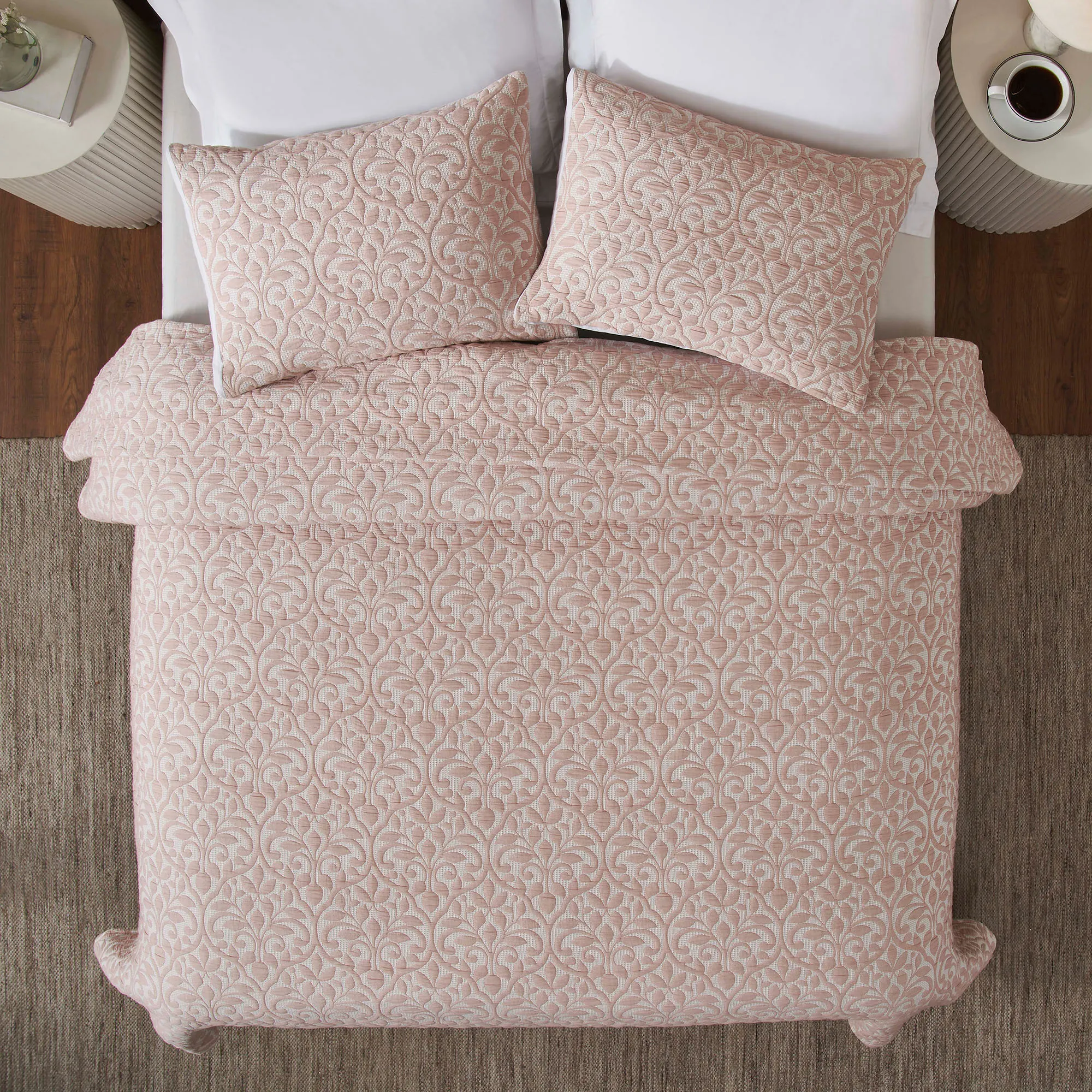 Vineyard Blush Traditional Leaf Woven Matelasse Coverlet Set Bedding