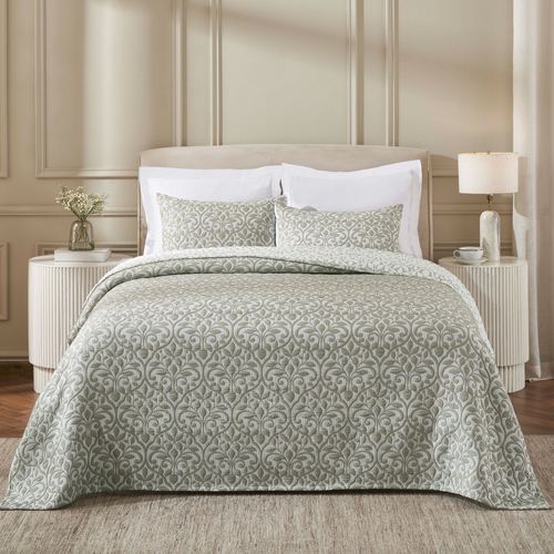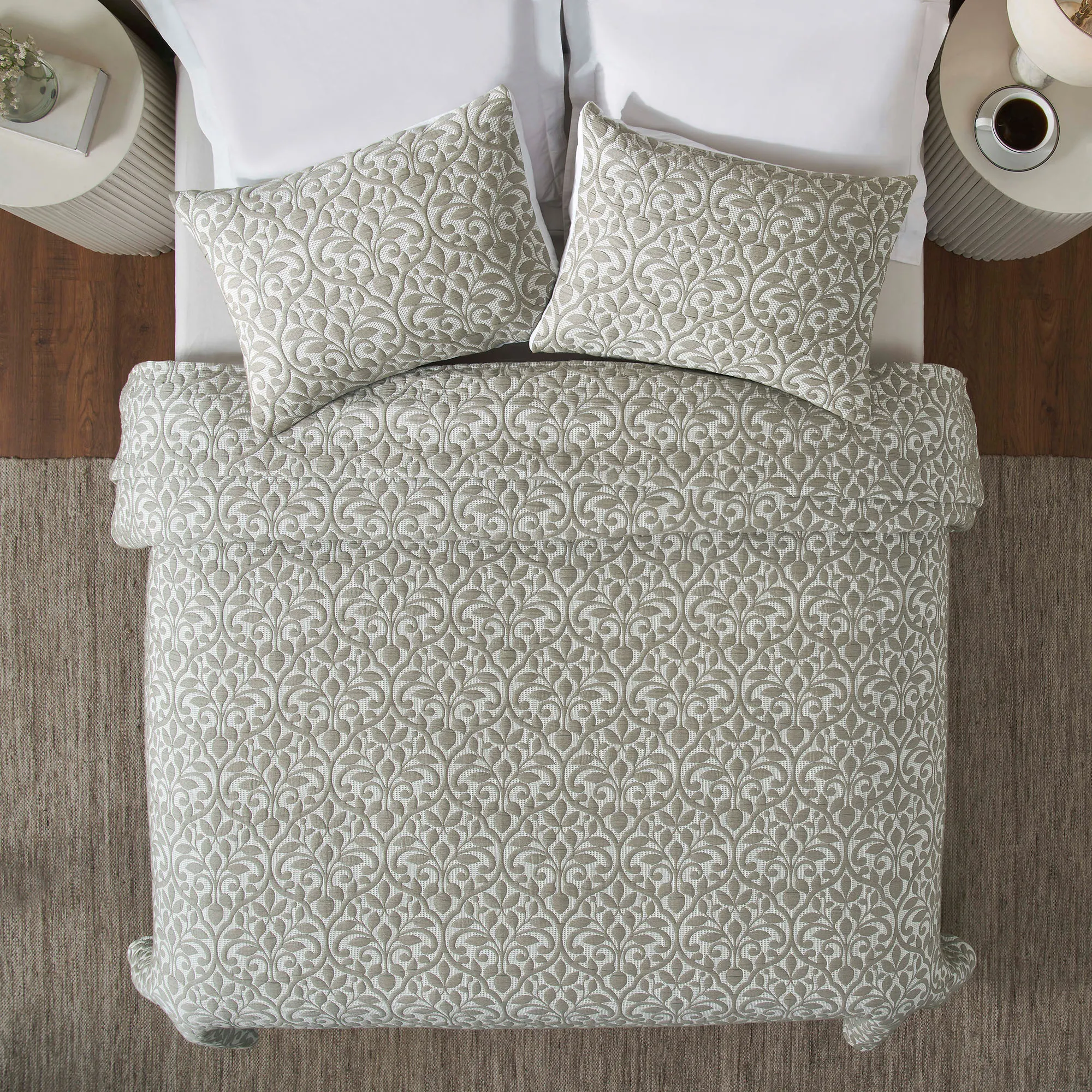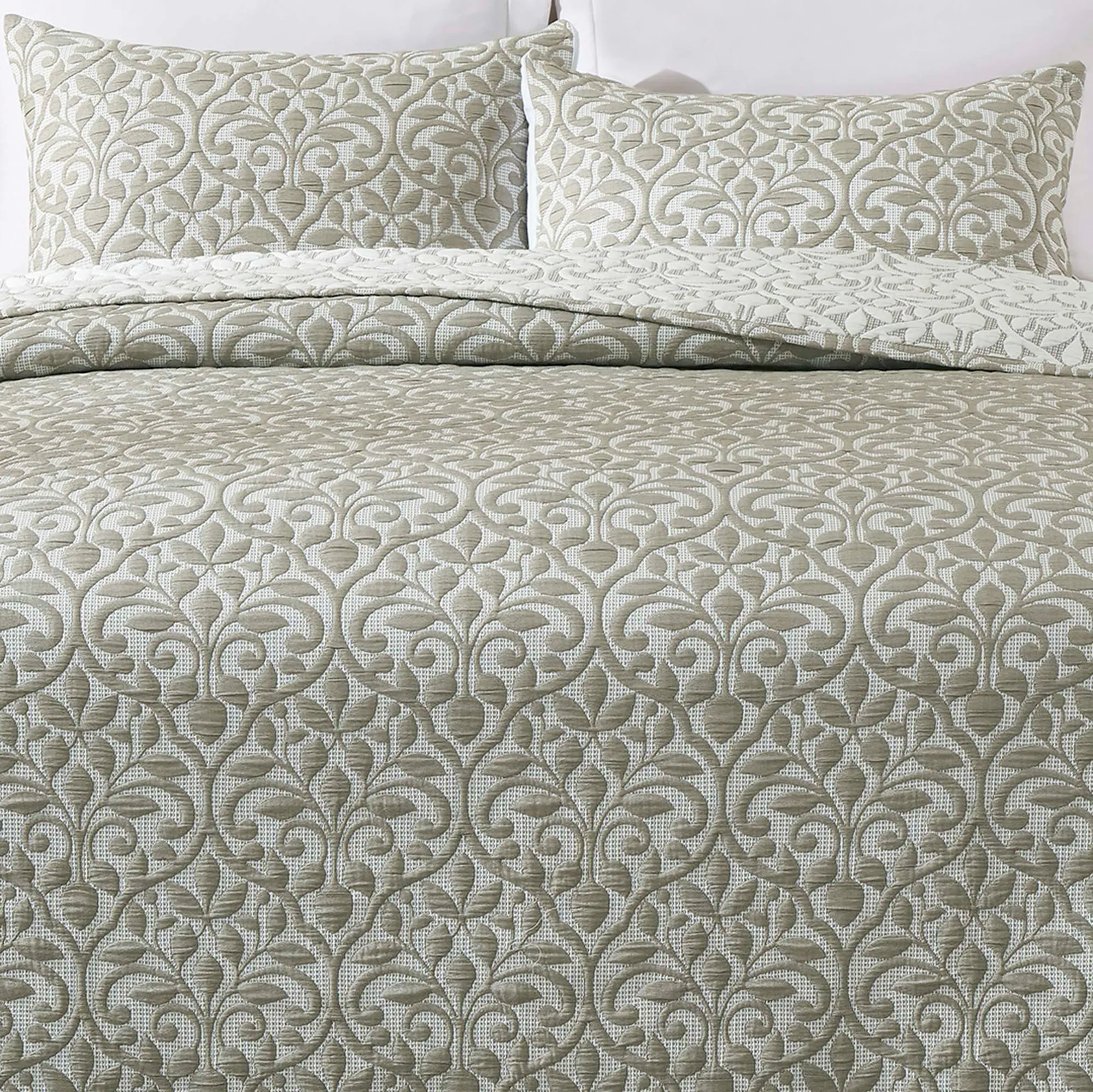 Vineyard Olive Traditional Leaf Woven Matelasse Coverlet Set Bedding