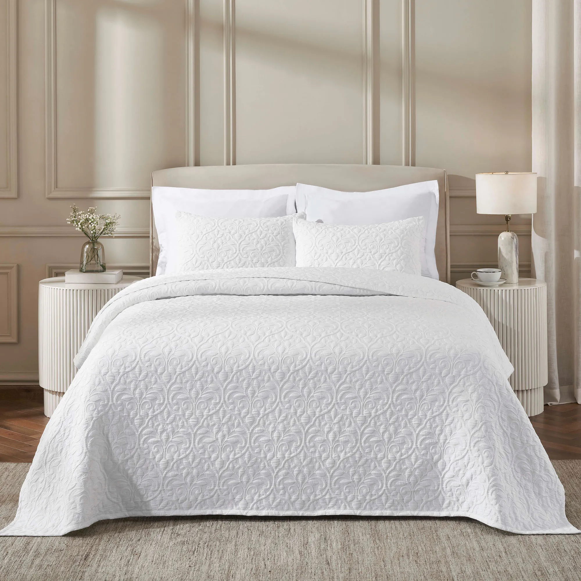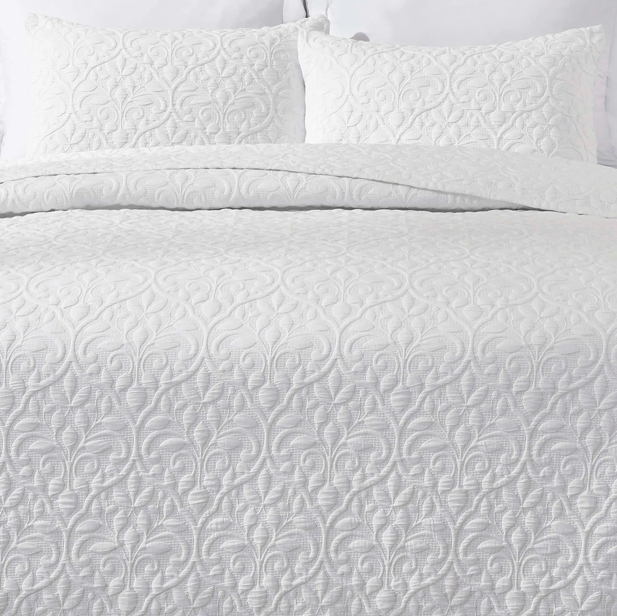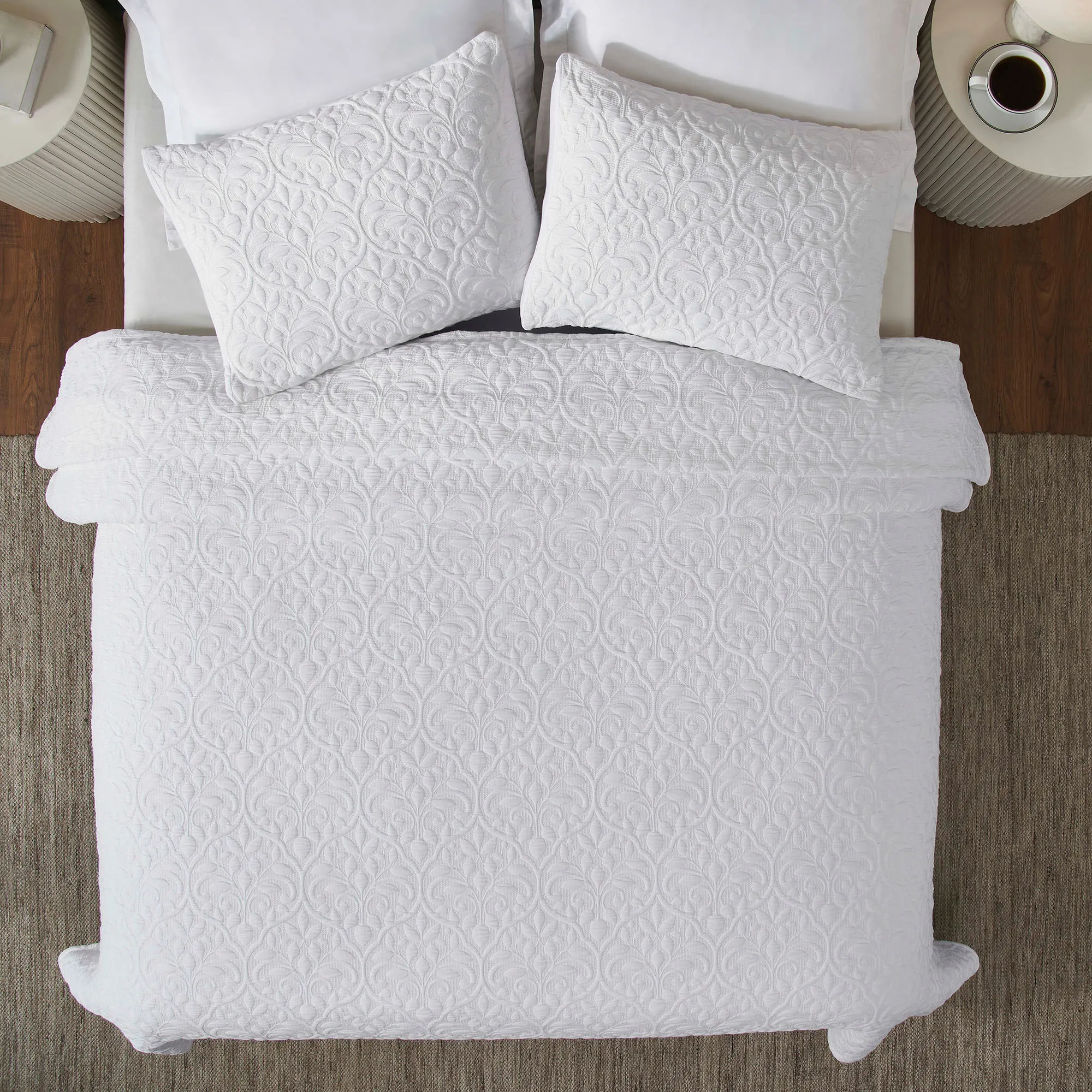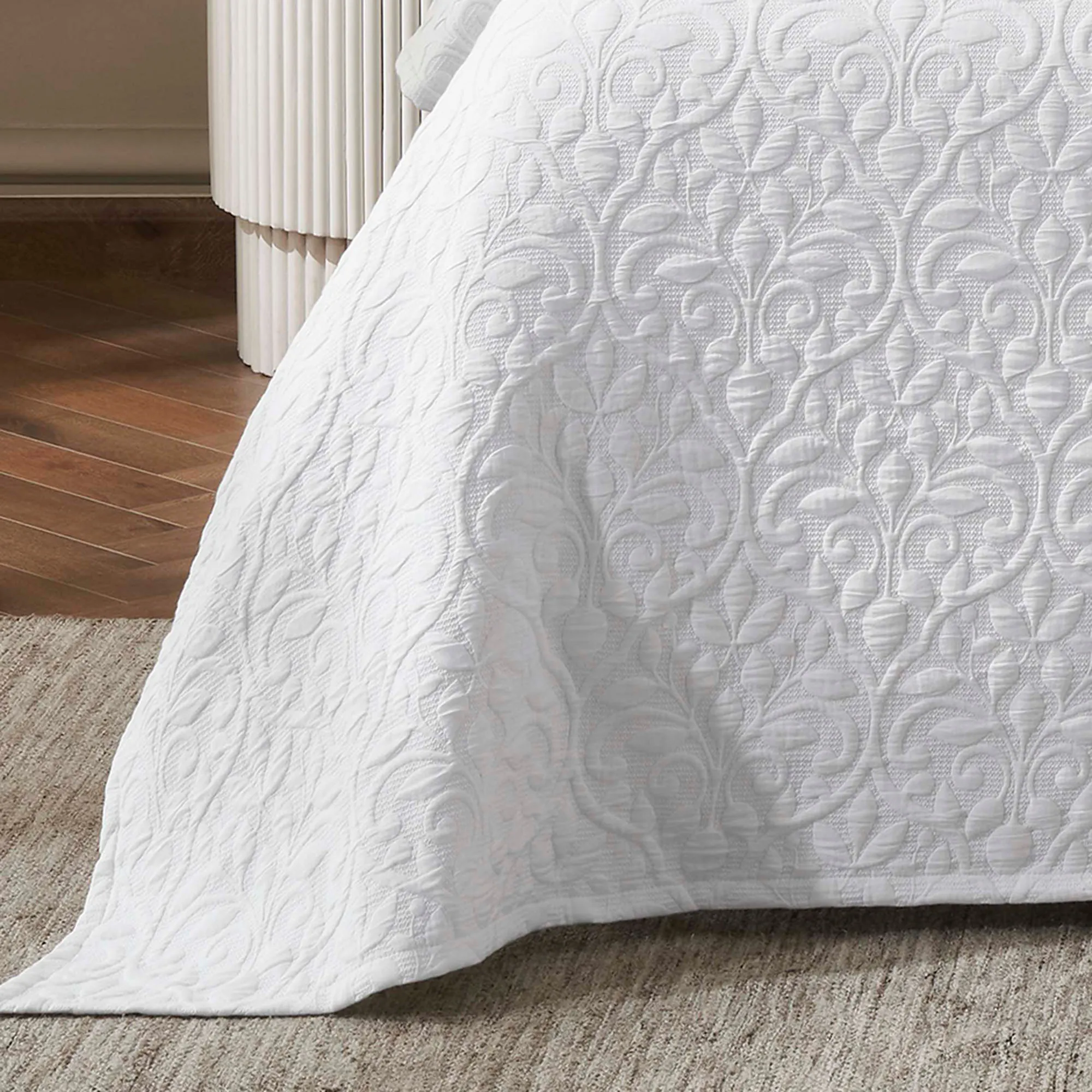 Vineyard Solid White Traditional Leaf Woven Matelasse Coverlet Set Bedding