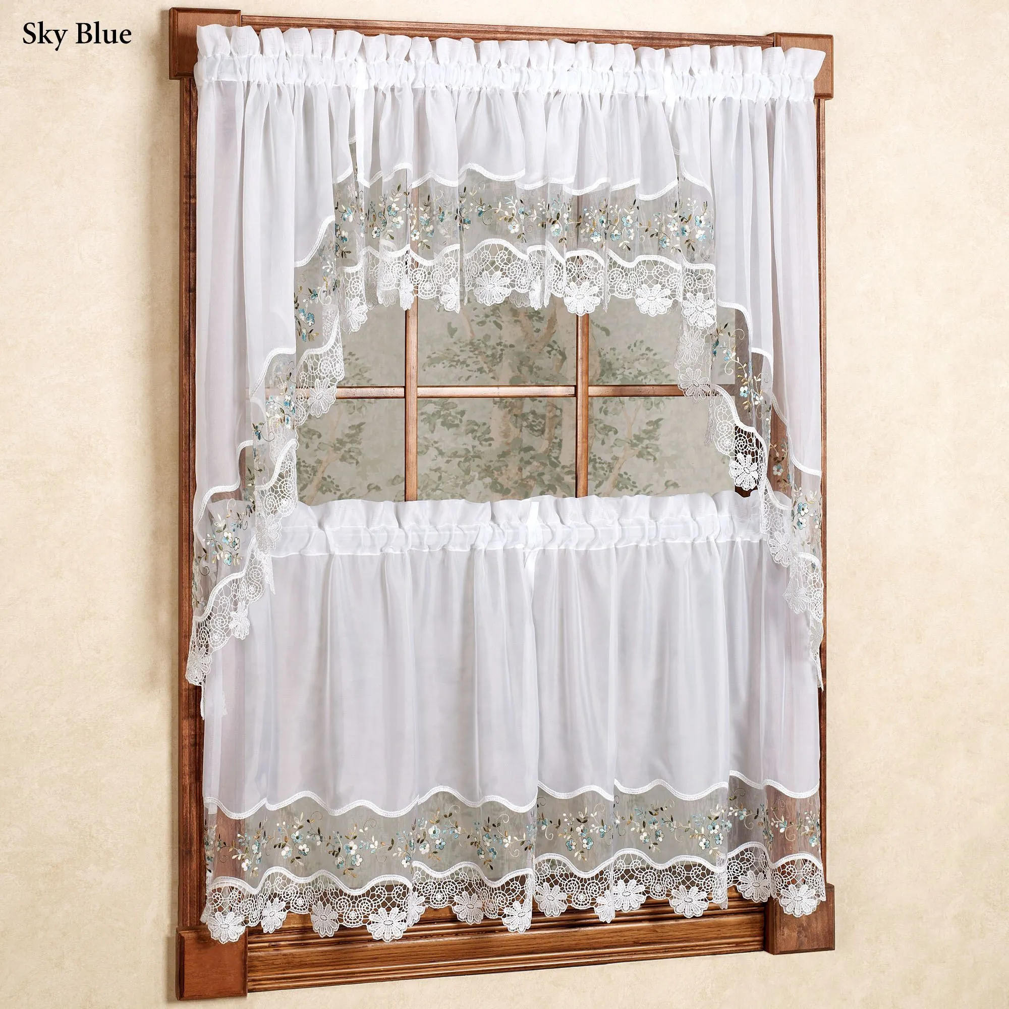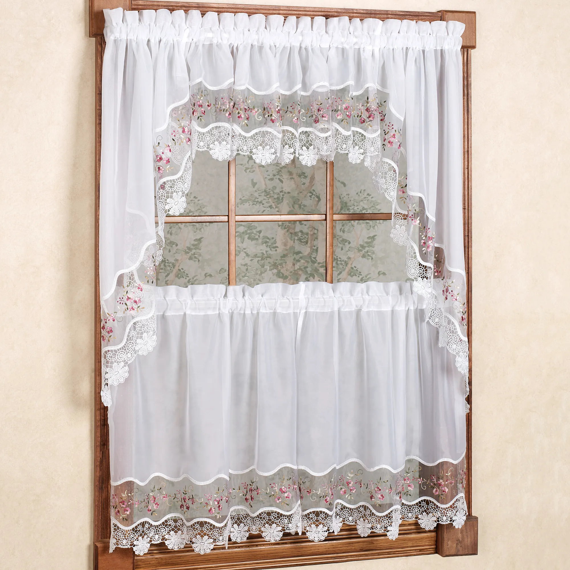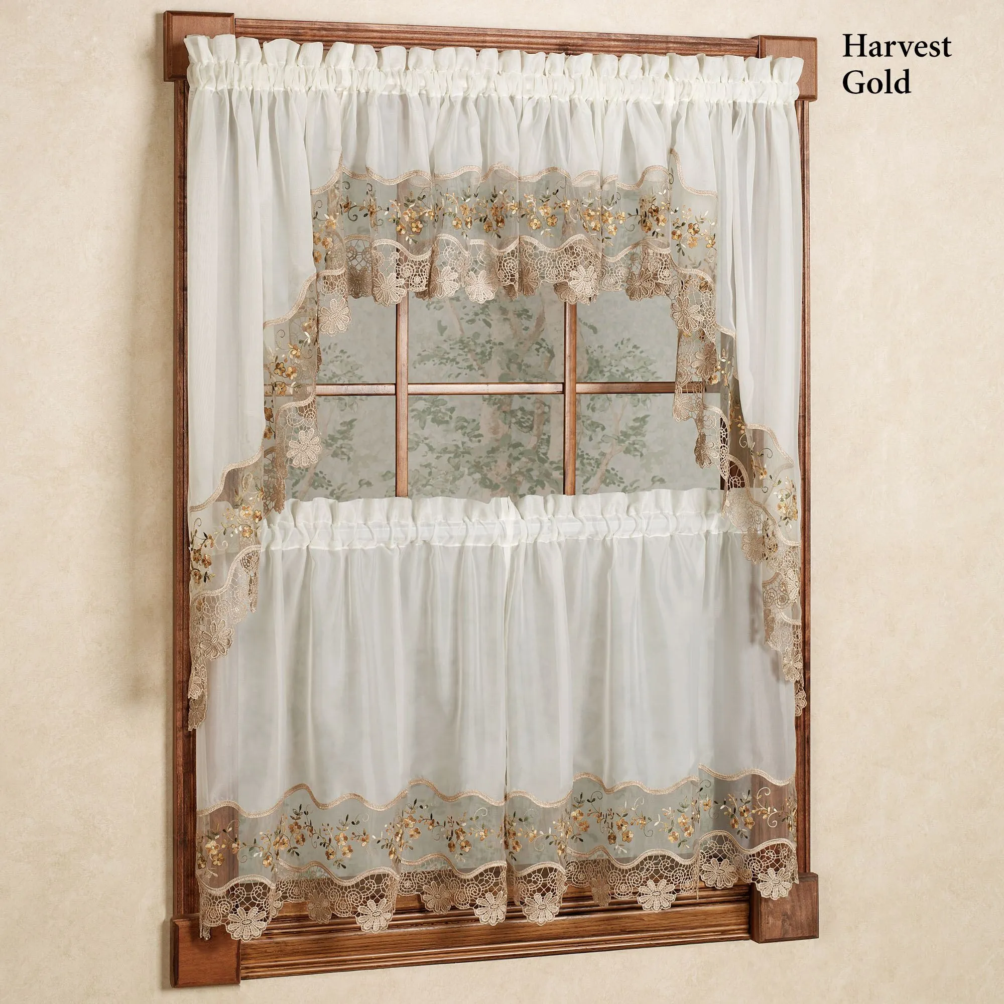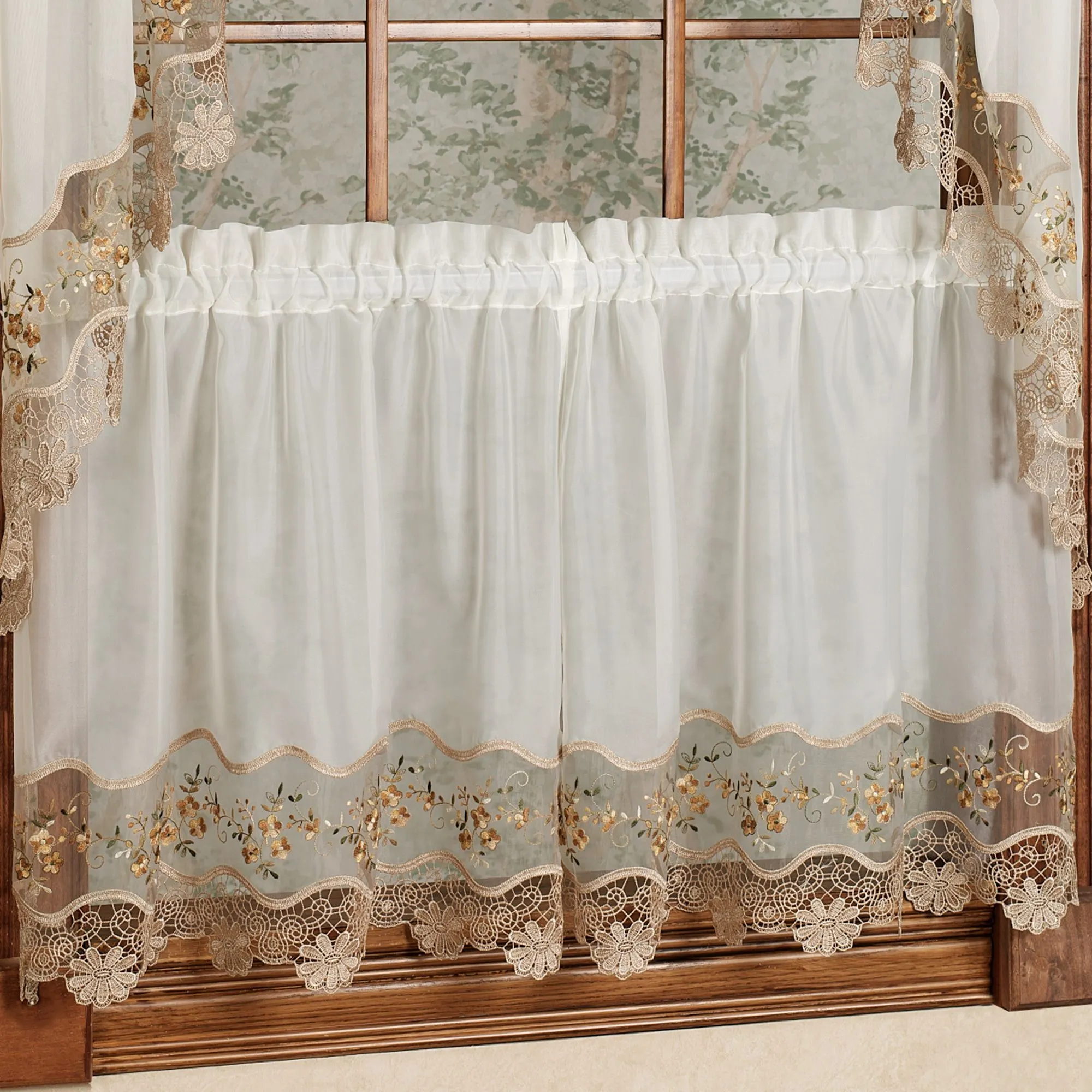 Vintage Embroidered Macrame Semi Sheer Tier Window Treatment