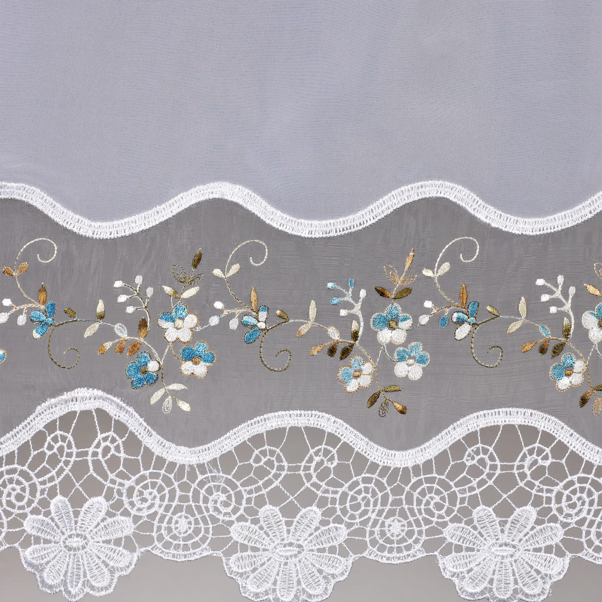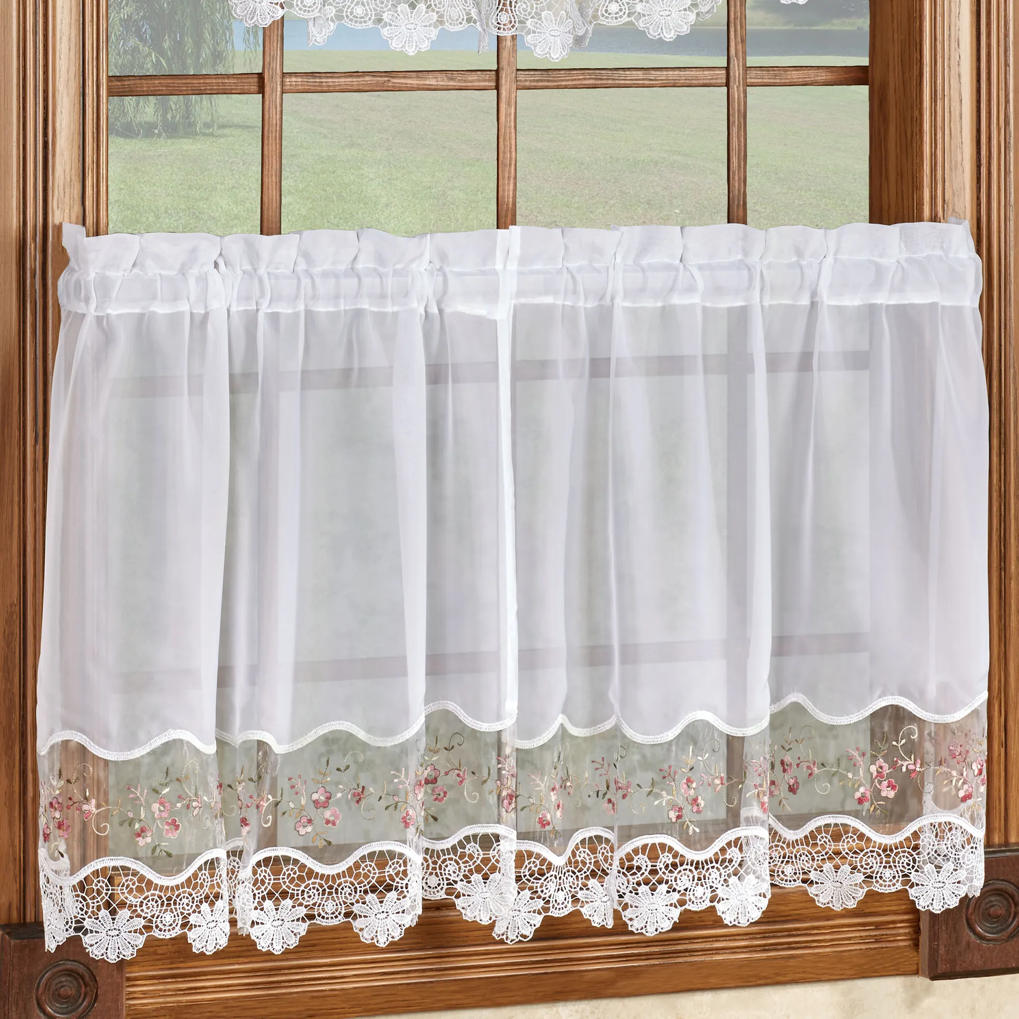 Vintage Embroidered Macrame Semi-Sheer Tier Window Treatment is polyester. Imported.