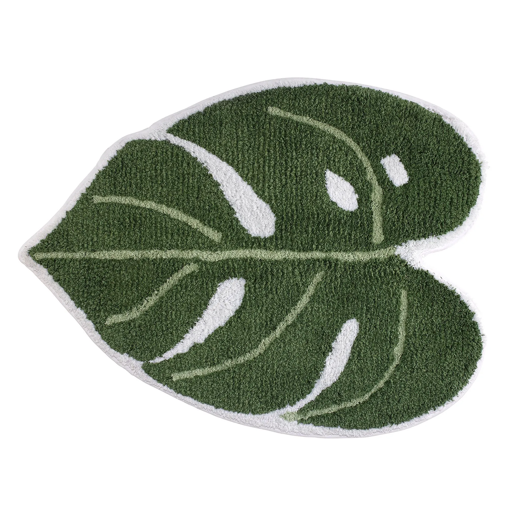 Viva Green Palm Leaf Shaped Tropical Bath Rug