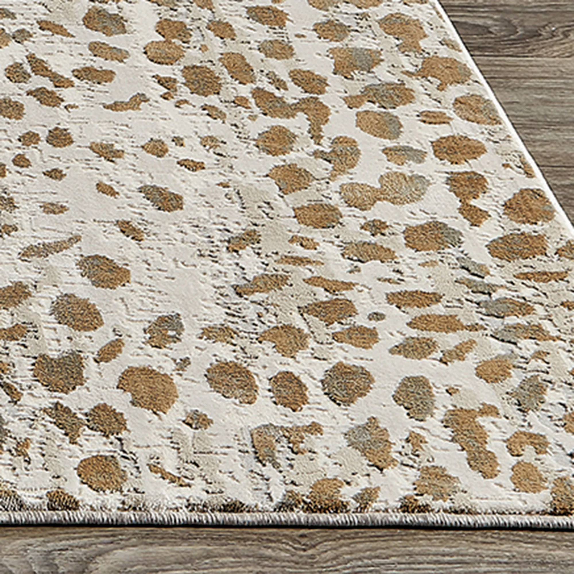 A faux animal print design has been spotted on the Waldor Rug. Power-loomed polypropylene/polyester area rug, .39" thick, includes hues of beige, ivory, and taupe. We recommend professional cleaning by a rug cleaner. Imported.