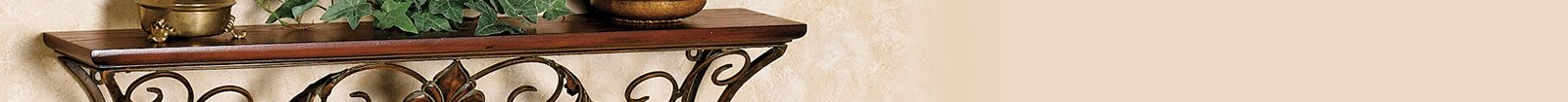 If you're more partial to acanthus leaves and stylized florals, your best bet is to pick up a few Victorian shelves. Bases formed from a single rose blossom or even a flourishing bouquet can lend grandeur to a blank wall. Plus, show off stately marble designs and feathery-winged angels in finishes from ivory to gold. Wall shelves of a nostalgic nature look lovely when accompanied by small antique vases or even a Victorian lady ledge sitter.
