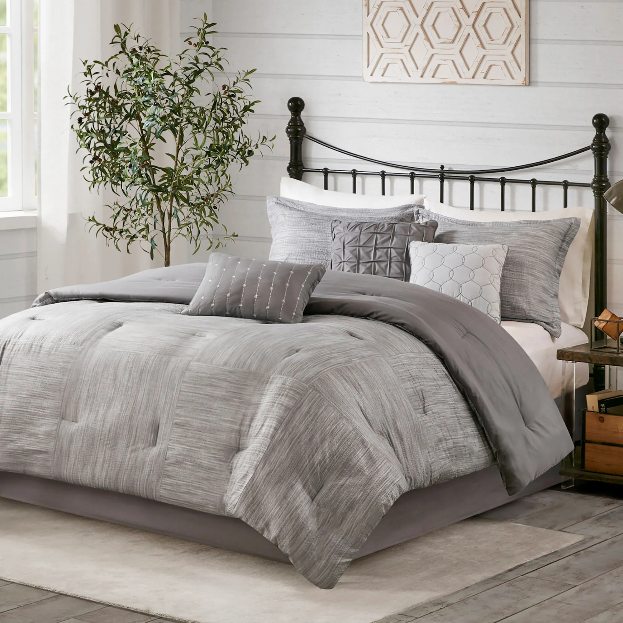 Walter Monochromatic Gray 7 pc Comforter Bed Set by Madison Park
