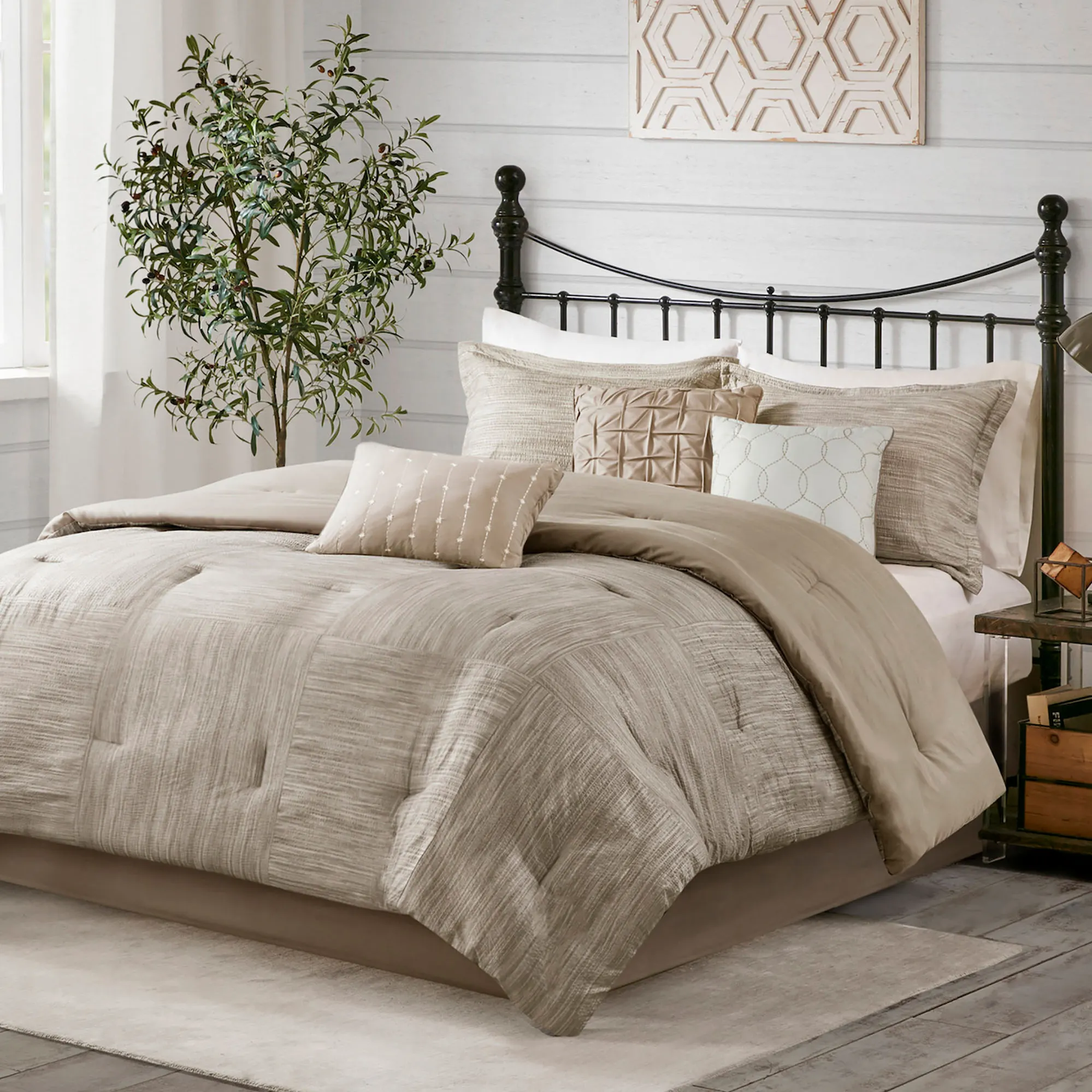 Walter Monochromatic Taupe 7 pc Comforter Bed Set by Madison Park