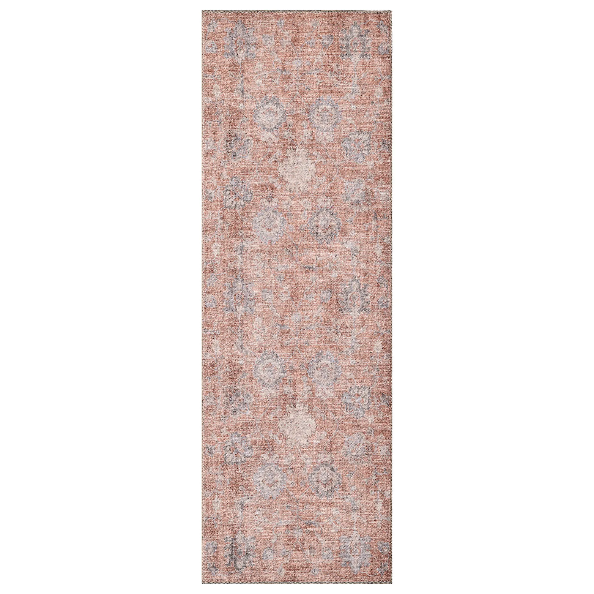 Elba Machine Washable Sienna Brown Antique Style Vining Floral Area Rugs