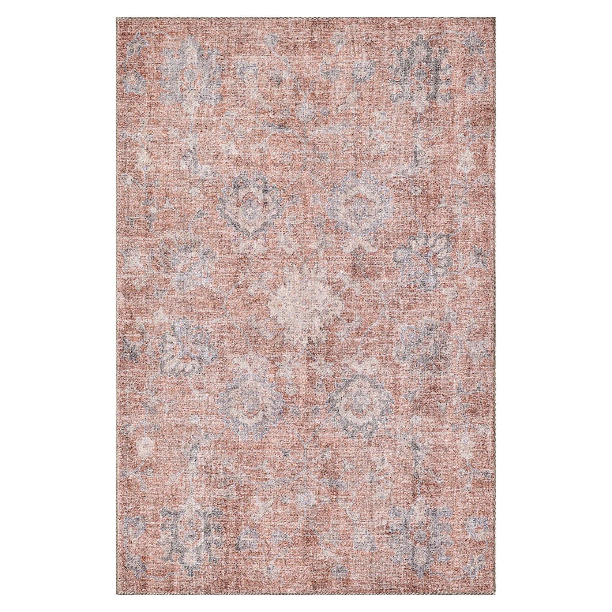Elba Machine Washable Sienna Brown Antique Style Vining Floral Area Rugs
