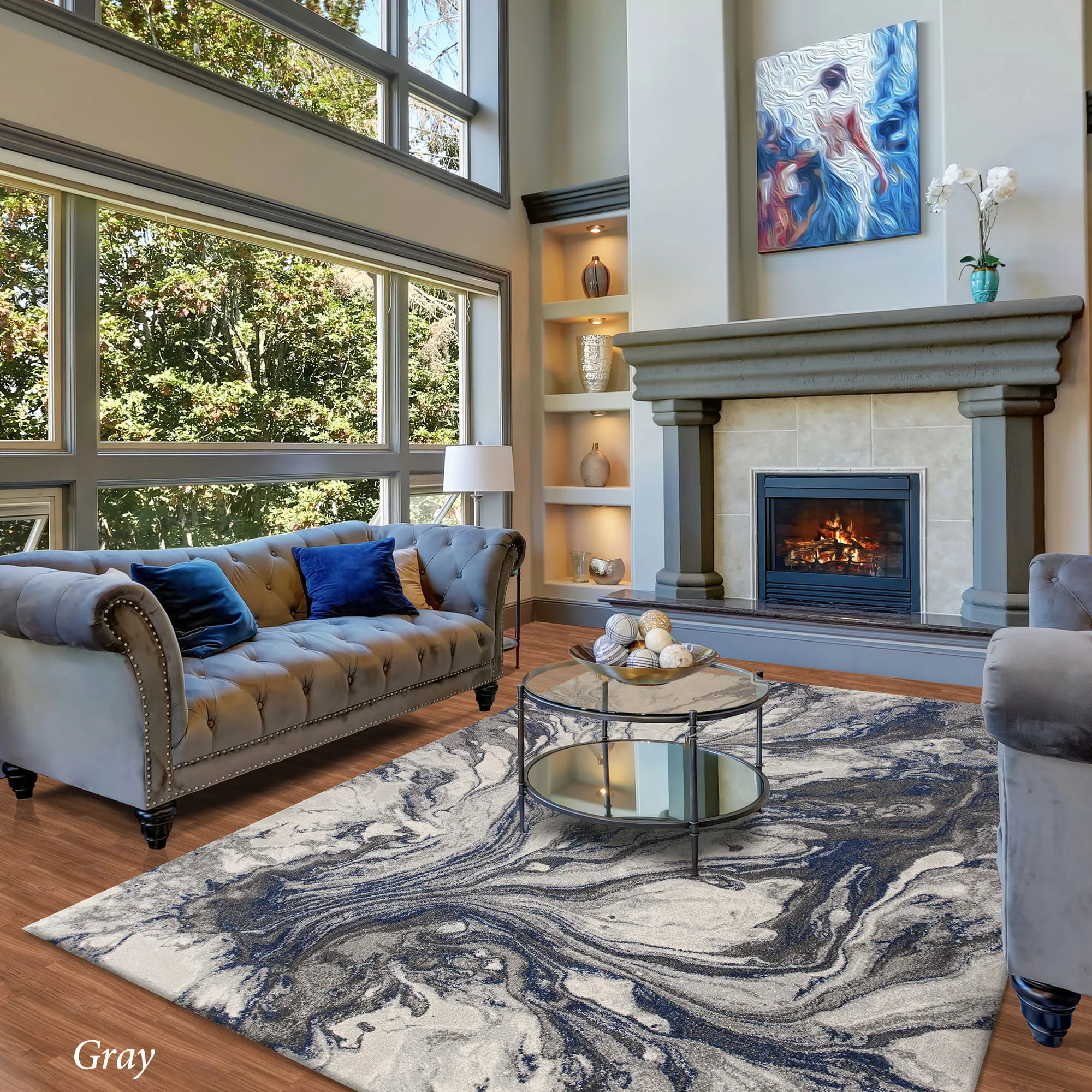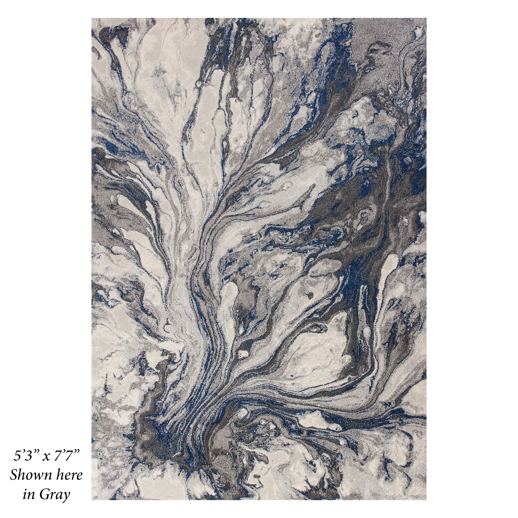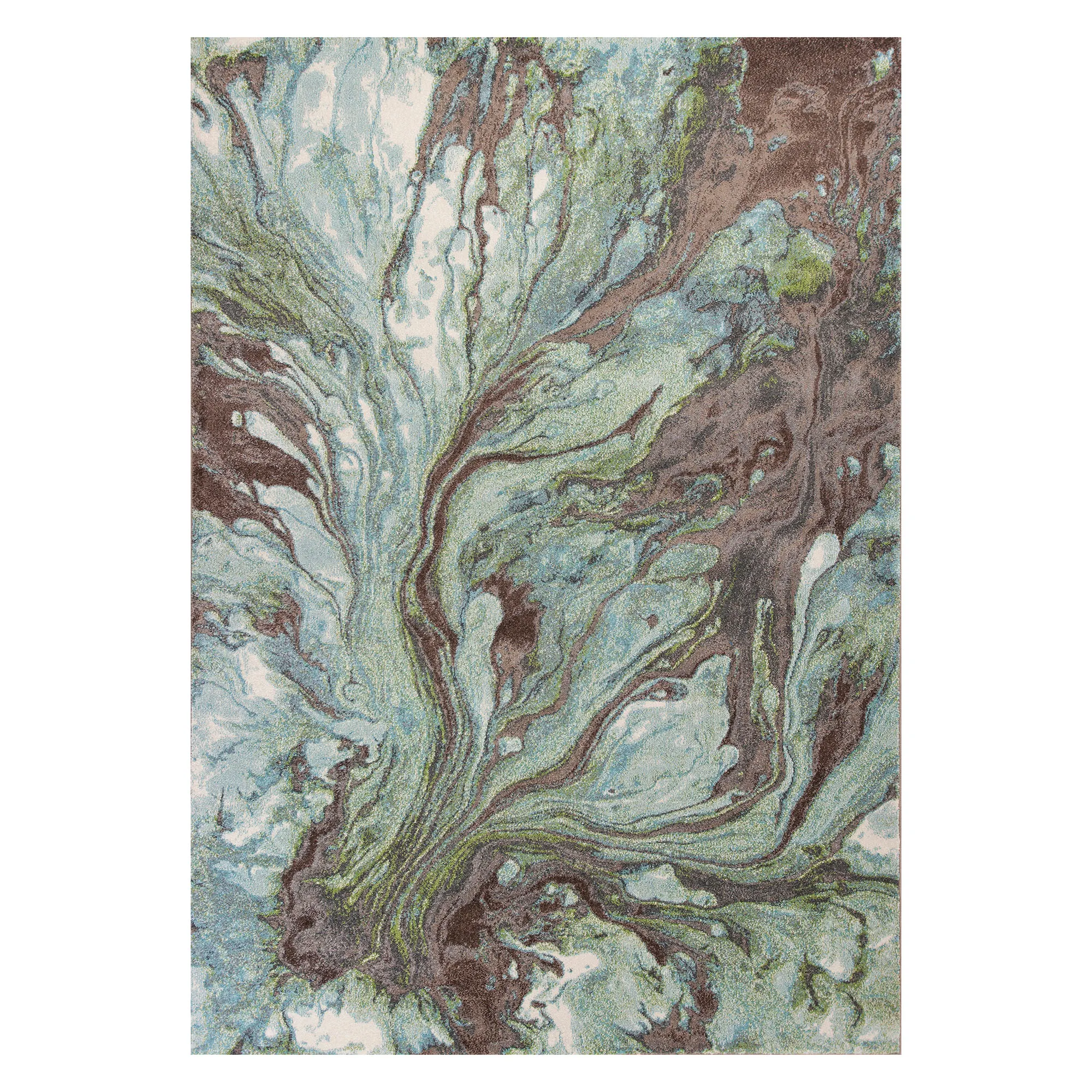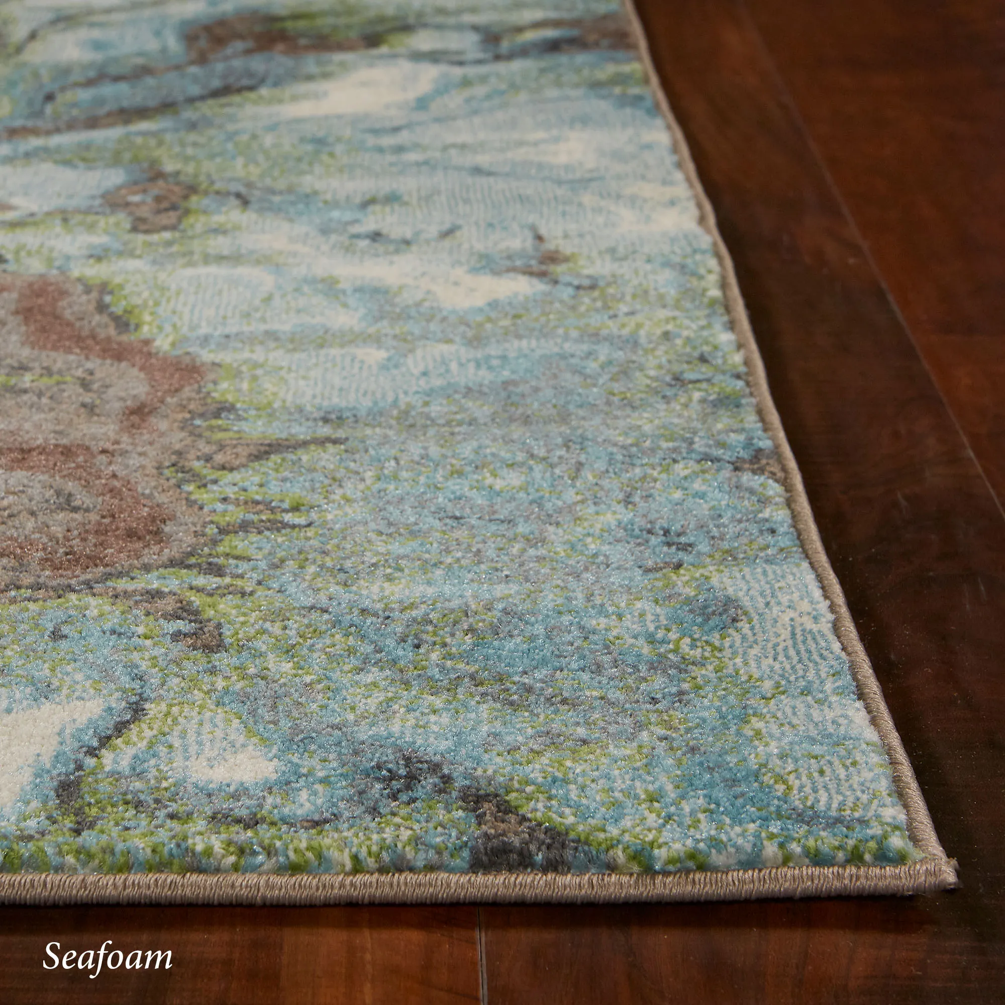 A spilled palette of Watercolors converges in undulating tones and slick style. Power-loomed from heat-seat polypropylene, the .5" thick area rug features marbled shades in a bold abstract design. Blue also has navy, off-white, and gray. Gray contains navy blue, off-white, and charcoal. Seafoam also features off-white, mocha, and chocolate. We recommend professional cleaning by a rug cleaner. Imported.