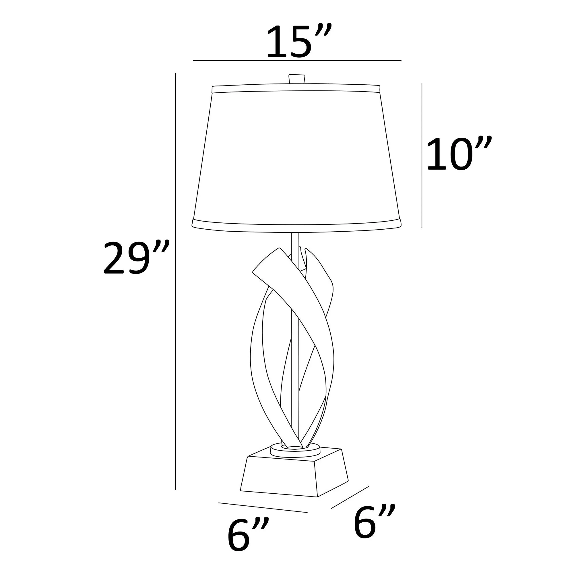 Contemporary designs create the intriguing display on the Wayde Table Lamp. Made of metal, this table lamp has a gunmetal finish and features openwork twisted designs on a black square base. The fabric shade is off-white. UL listed. Requires one 100W max. bulb. Measures 15"dia.x29"H; weighs 10 lbs.