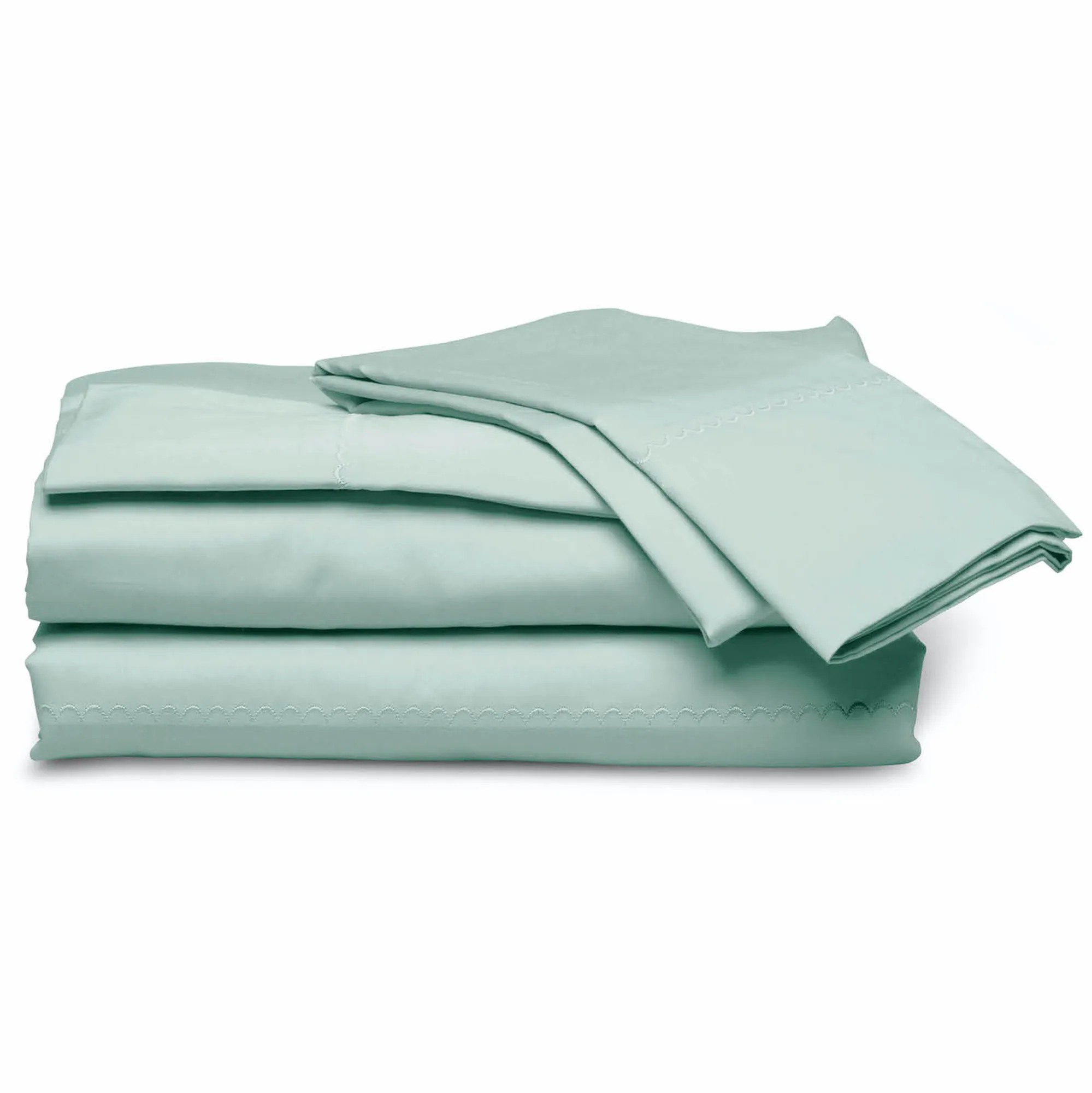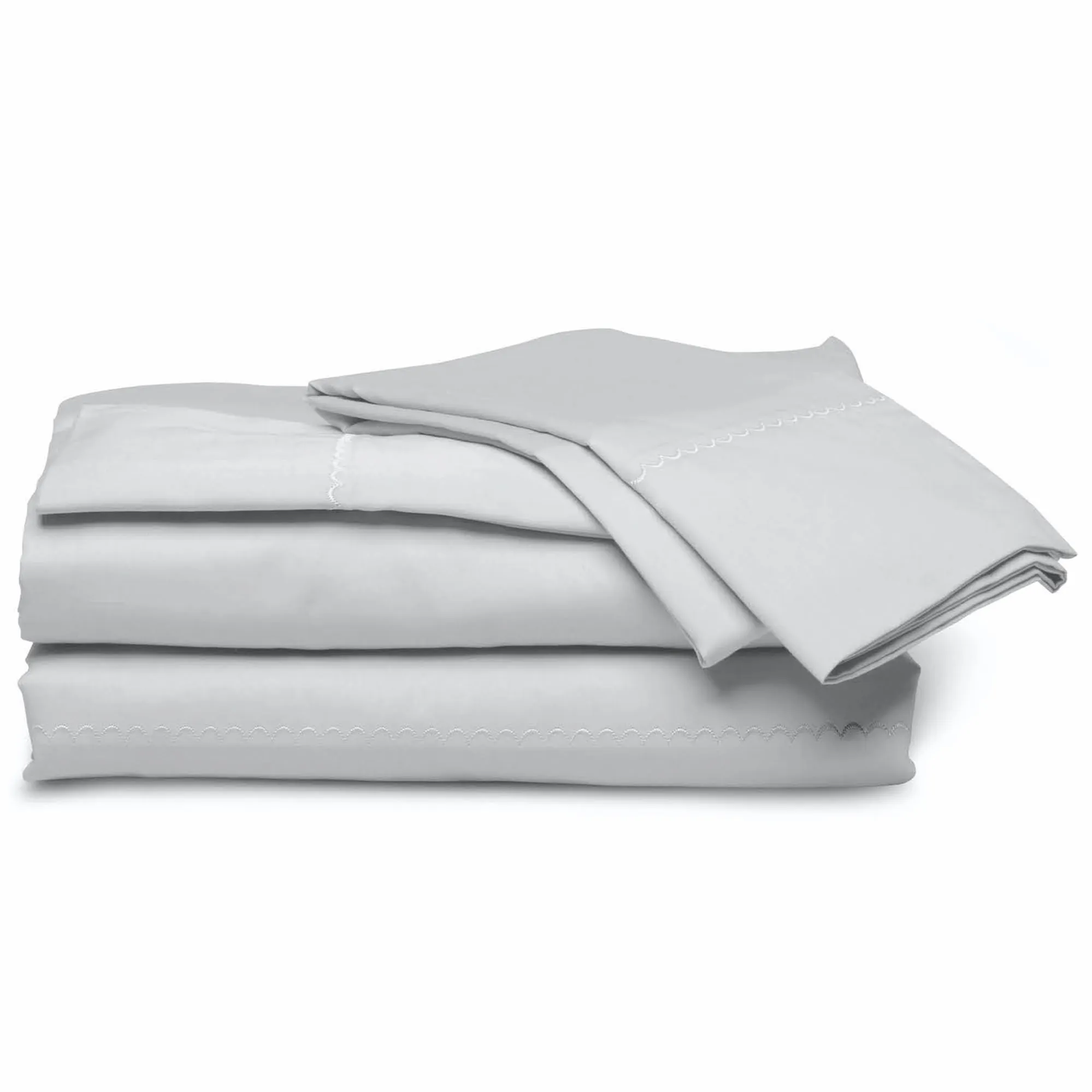Float away to dreamland with the Weightless Cotton Sheet Set by purecare(R). In a soothing solid color, the 340 T.C. Micro Cotton(R) sheets provide a cool, comfortable sleep experience and lightweight, crisp, luxuriously soft feel crafted from long-staple cotton yarn spun into fine strands. The sateen weave has been treated with antimicrobial silver product protection, which lasts for over 50 washings and inhibits bacteria, mold, and mildew that cause stains, wear, and odor. The sheet set includes a fitted sheet, a flat sheet, and pillowcase(s). The fitted sheet has a 1" Precision-Fit(R) elastic cuff and cinched corners to fit mattresses up to 18" deep. The flat sheet and pillowcase(s) are embellished with an embroidered scallop motif on the hem. Machine washable. Imported.