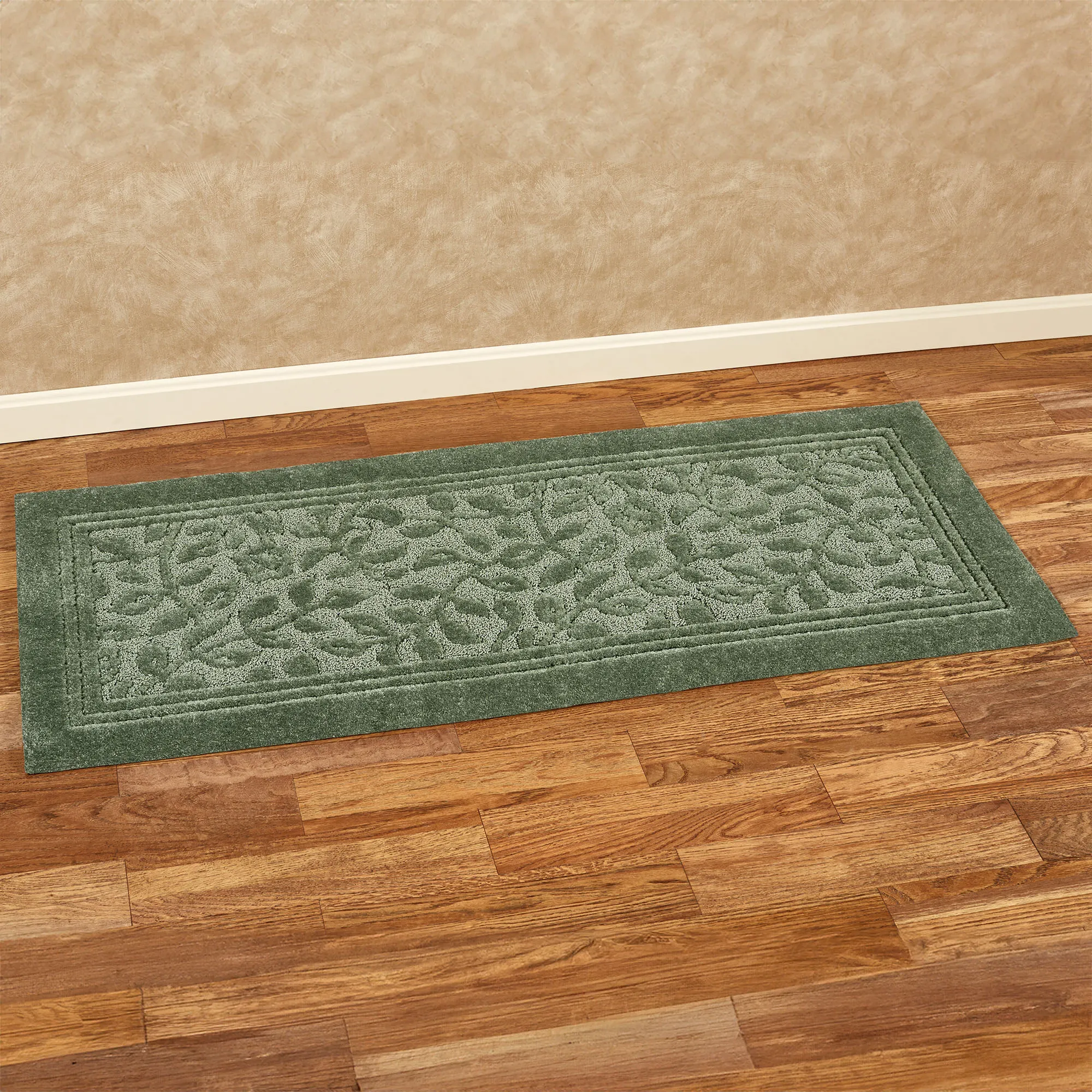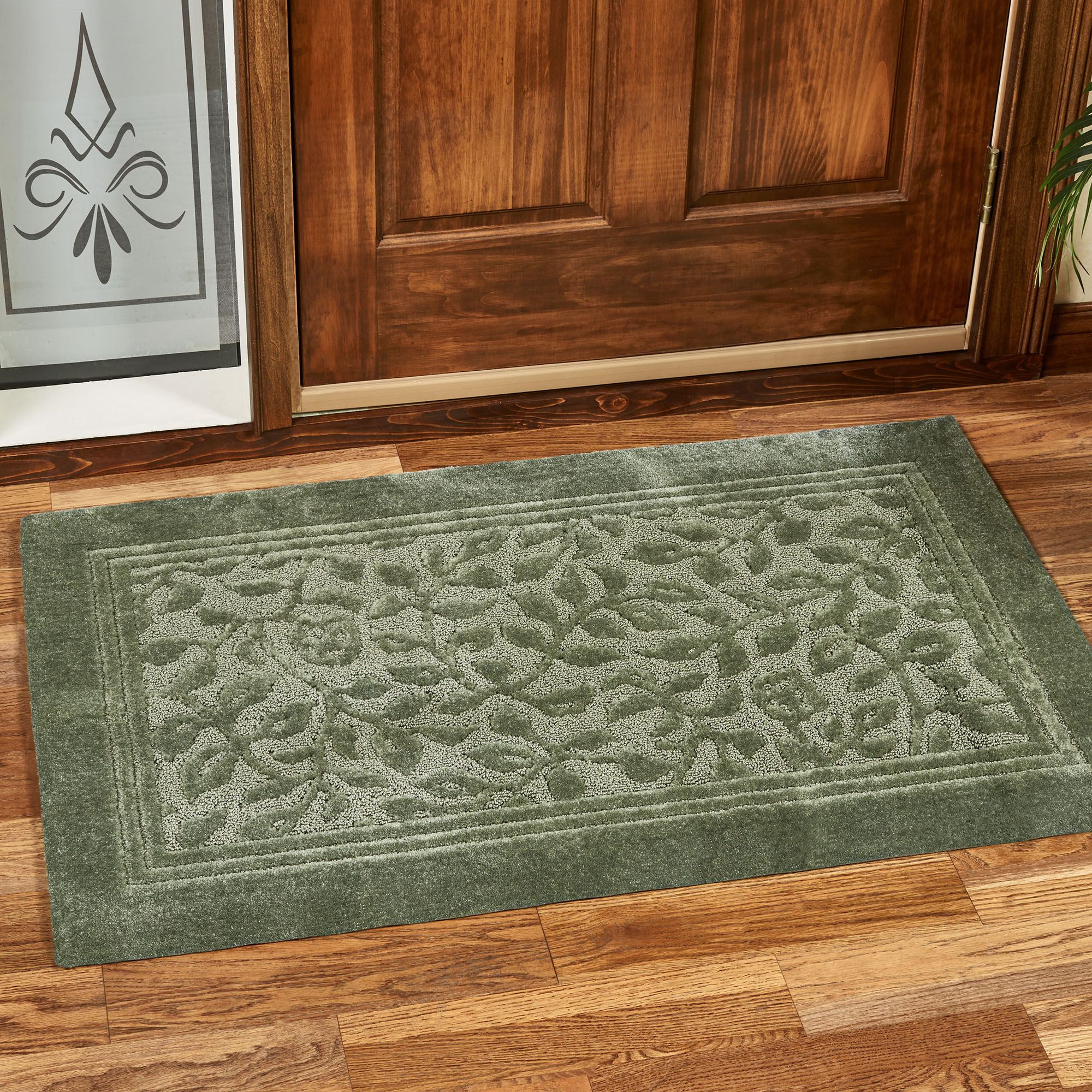 Made of durable, heat-set nylon, the Wellington Sage Rug has an intriguing tone-on-tone sculpted vine motif. The hi-lo cut and loop pile, .625" thick, is super-soft. Rug Runner is available in two sizes; choose 2'x5' or 2'x9'. Rectangle Rug is 5'x6'9". Non-slip back is latex. Spot clean.