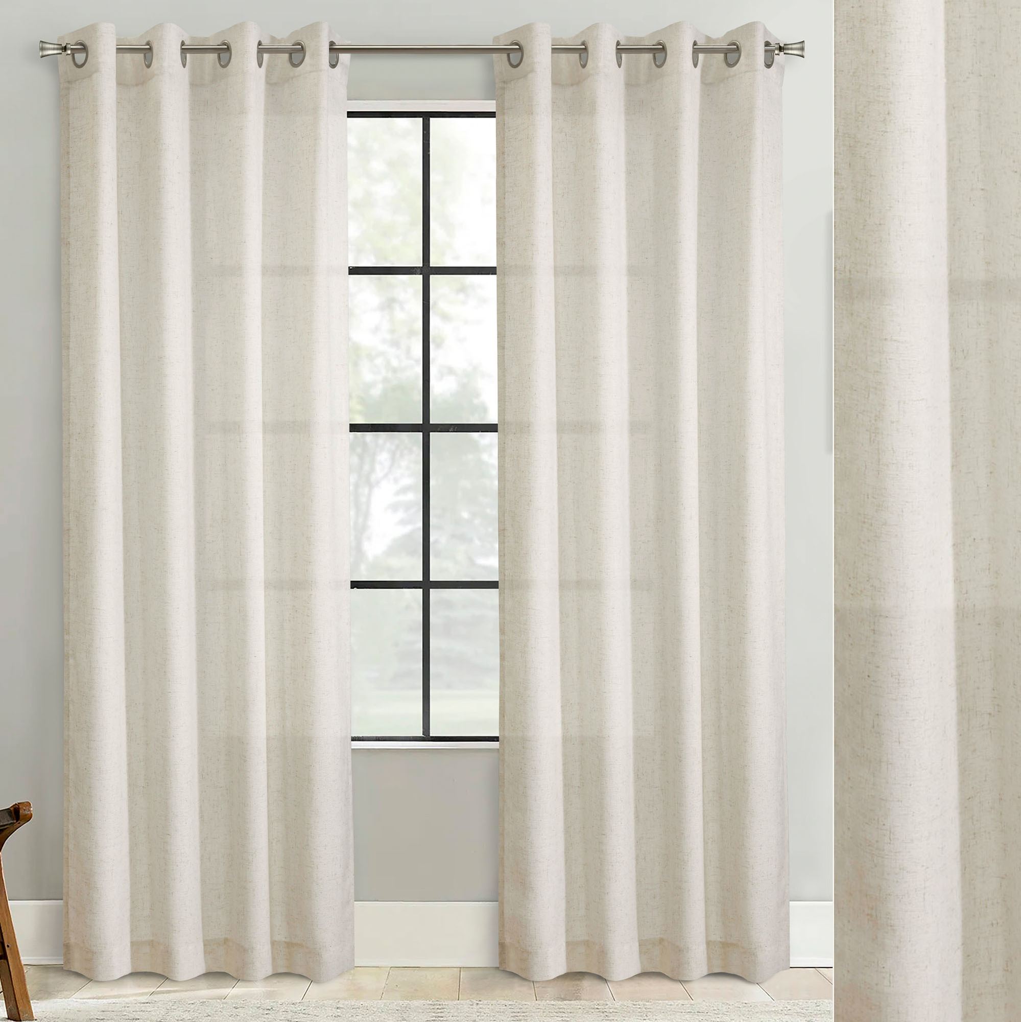 Westcort Neutral Faux Linen Feel Light Filtering Grommet Curtain Panel