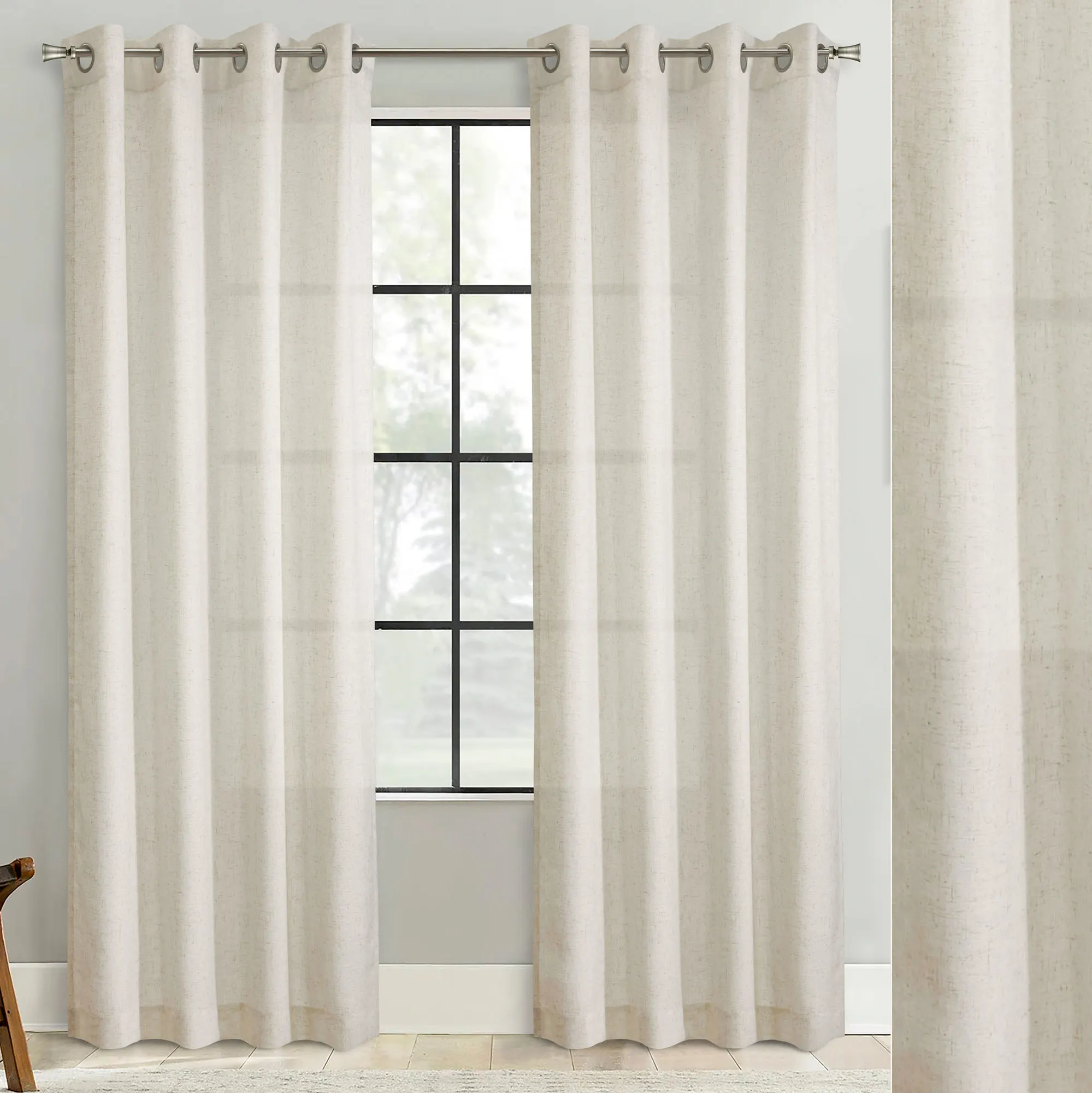 • Woven polyester/linen-blend window panel
