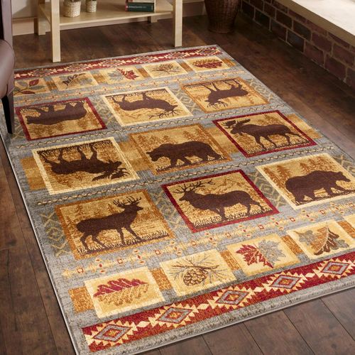 Wildlife Animal Bear Elk Deer Moose Rustic Area Rugs