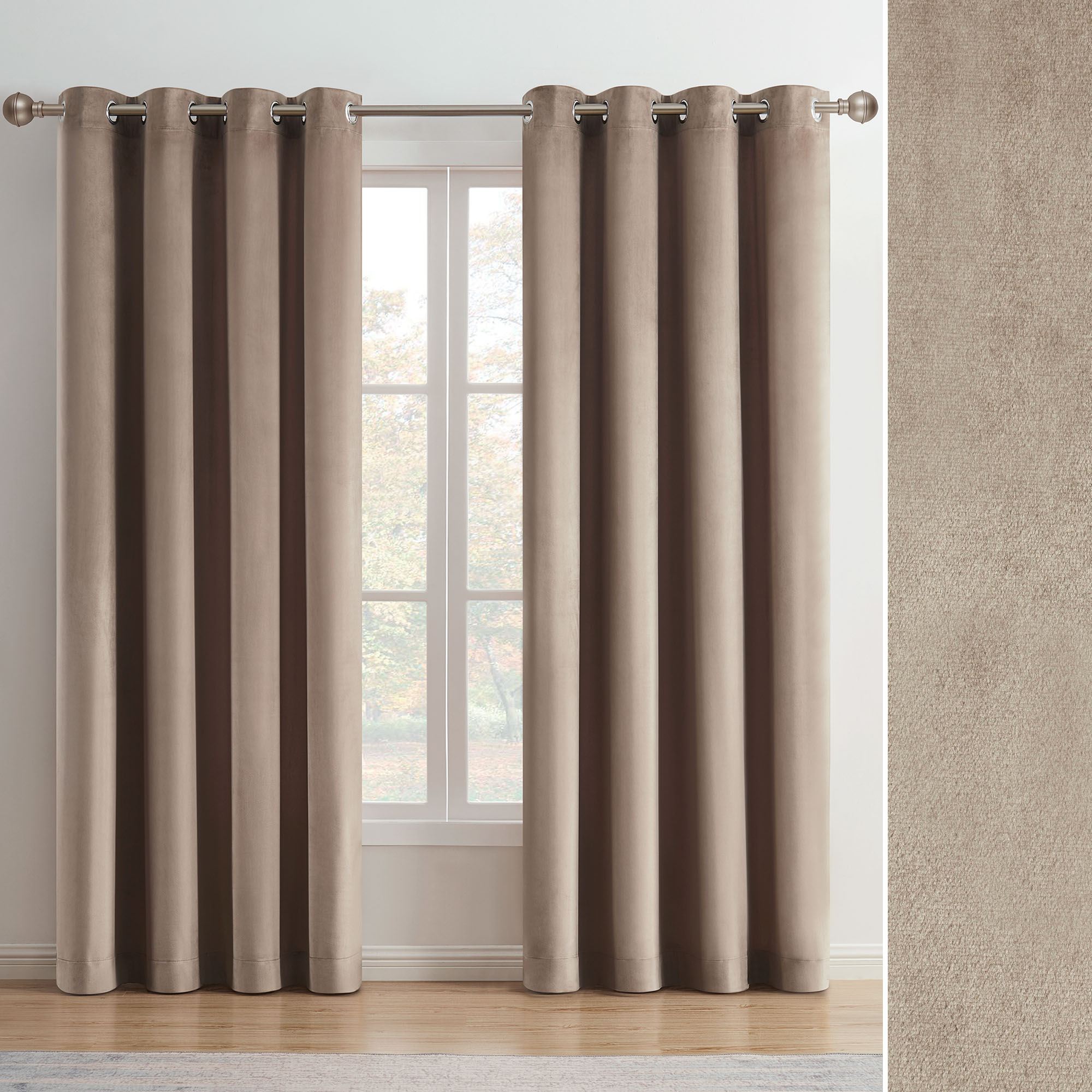 Add a luxe touch to your space with the Wilkinson Grommet Curtain Pair. In a solid color, the polyester window treatment features a rich faux velvet texture. The 1.5" dia. metal grommets have a silver finish. Wide curtain pair measures 104"Wx84"L overall. Machine washable. Imported. The curtain pair width is the total width of two panels together.