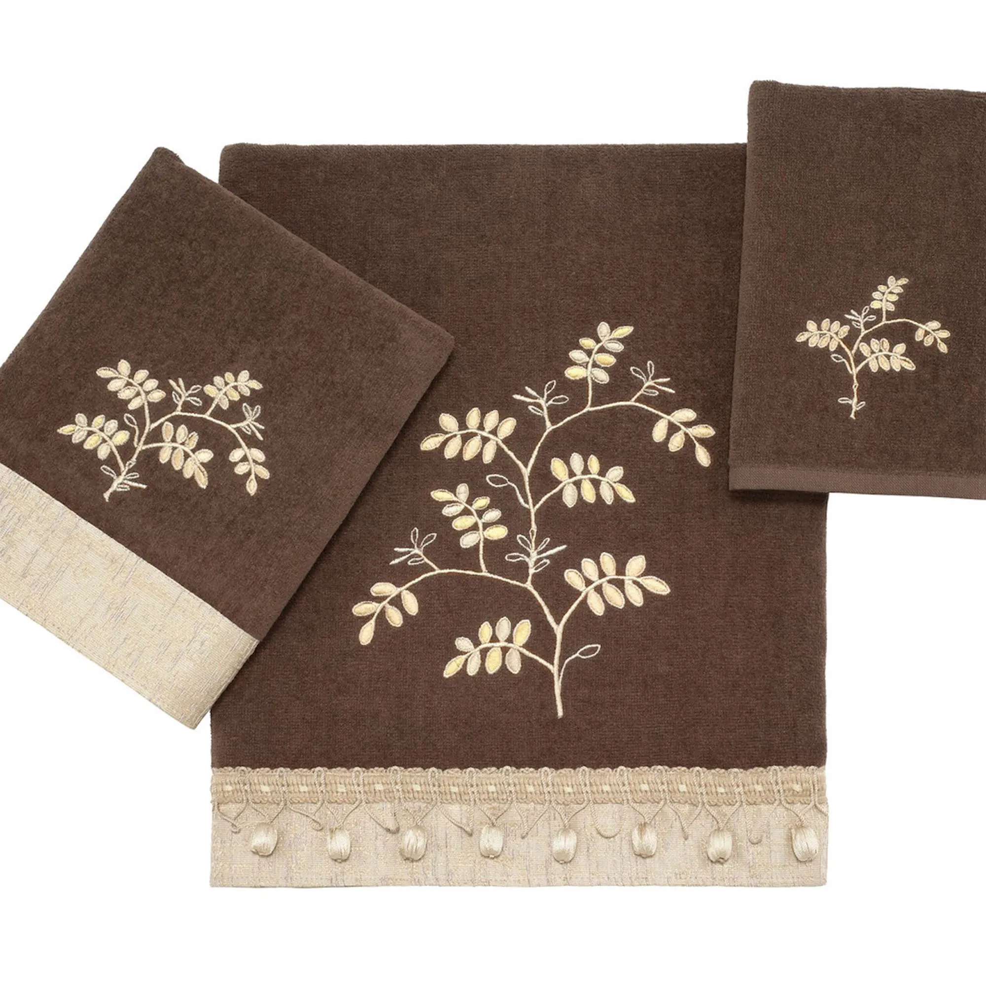 Willow Nature Inspired Embroidered Leaf Mocha Bath Towel Set