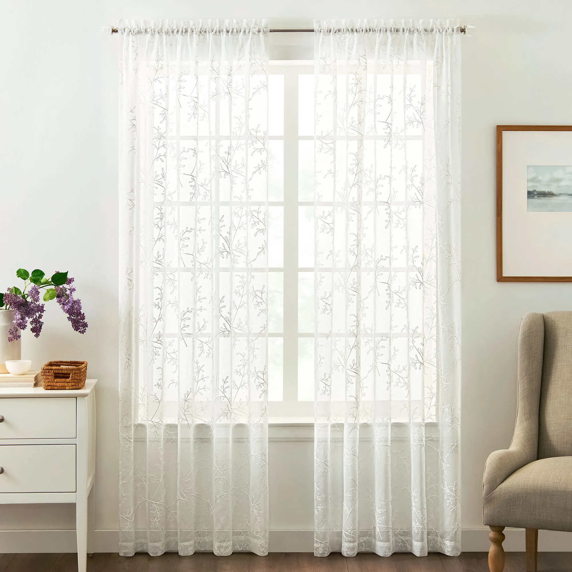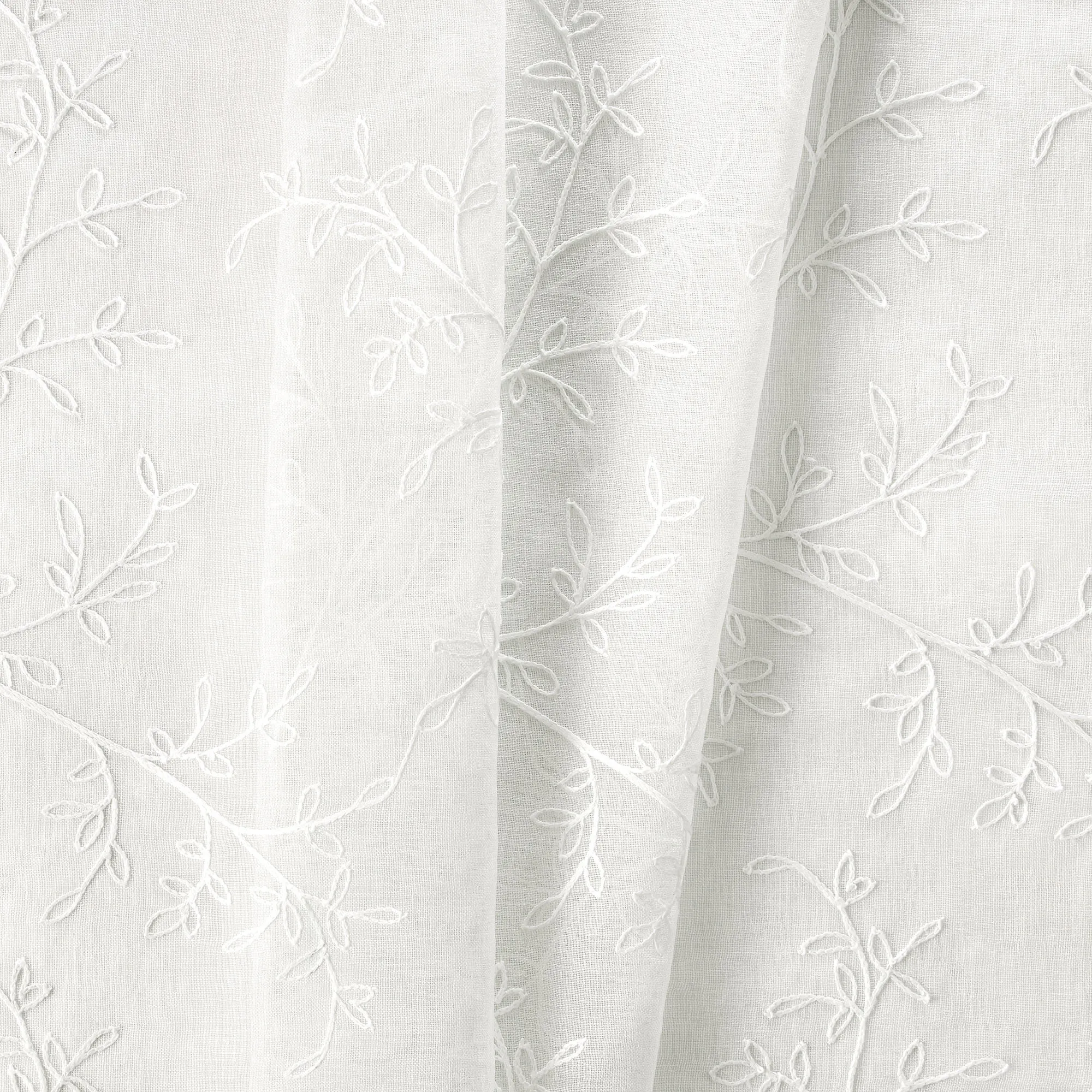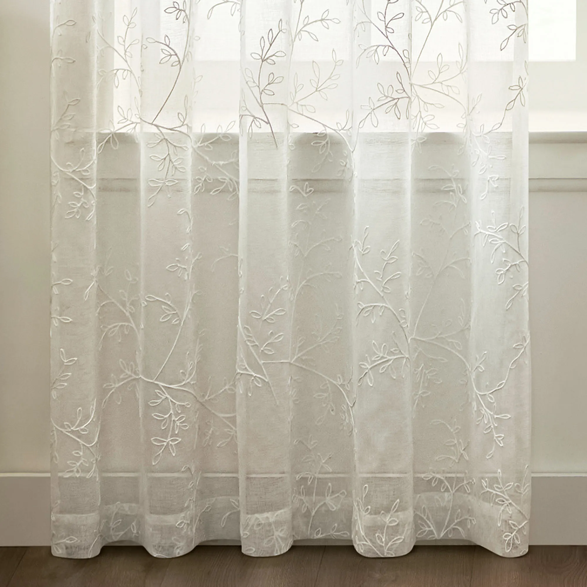 Willow Bloom Embroidered Sheer White Curtain Panel