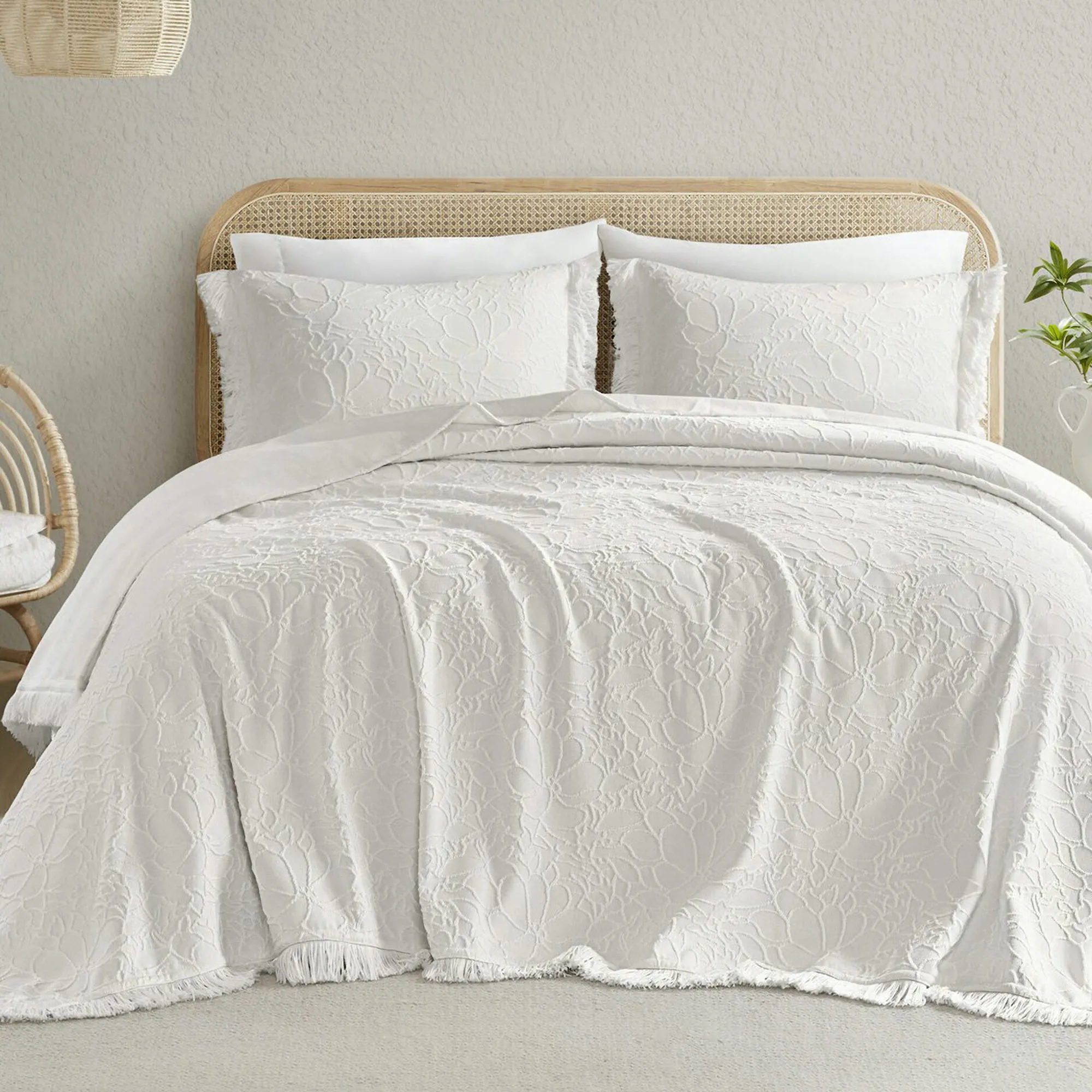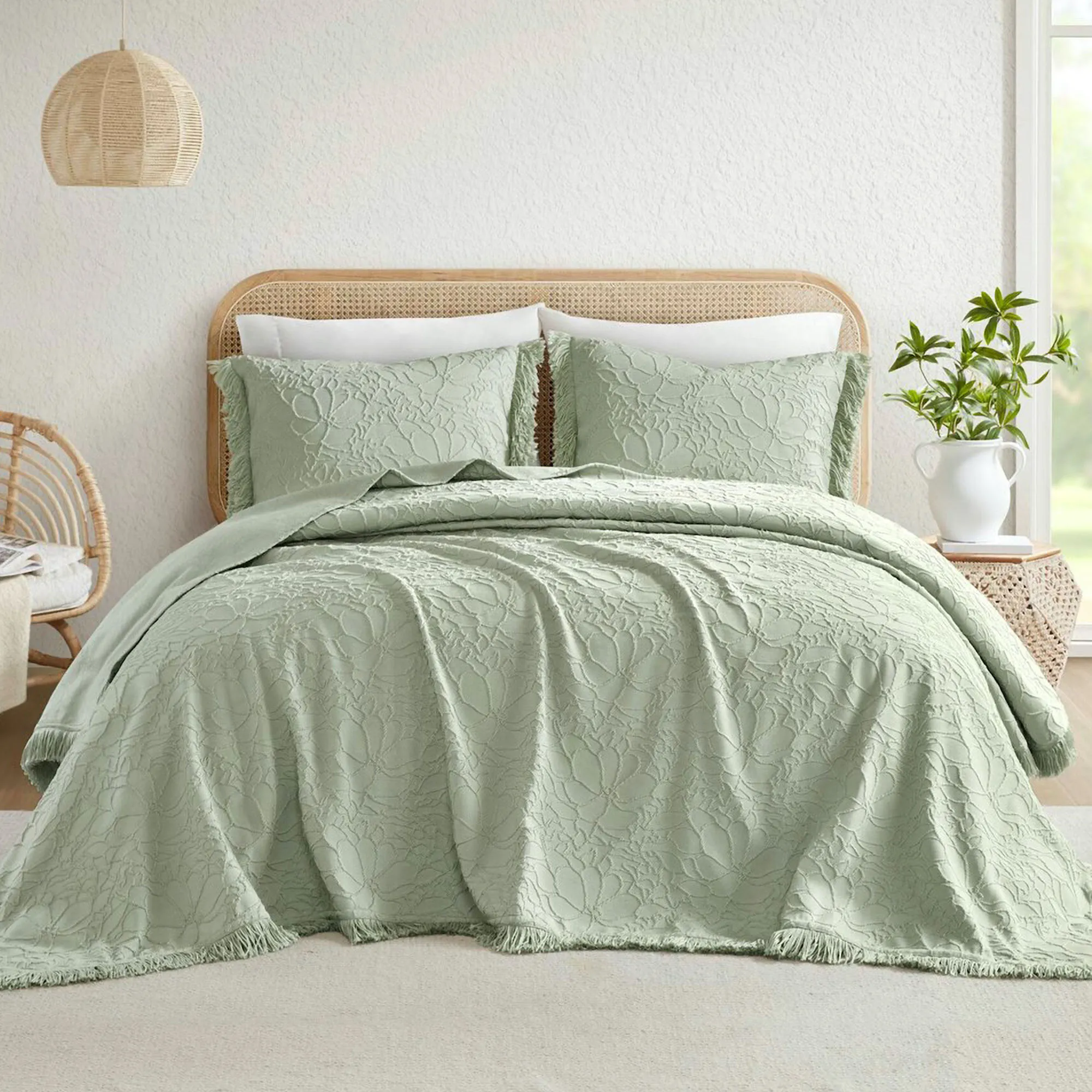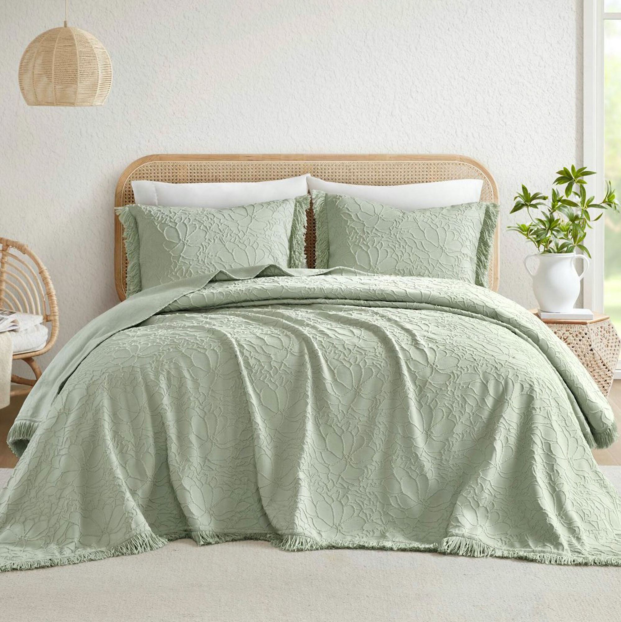 Willow Sage or White Lightweight Tufted Chenille Bedspread Set Bedding from Madison Park