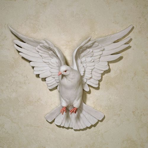 With its wings extended in flight, this Windborne Dove is a beautiful sight to see. Made of resin, this bisque white bird wall accent has realistic details along with a coral beak and feet. Measures 16"Wx4.5"Dx13"H.