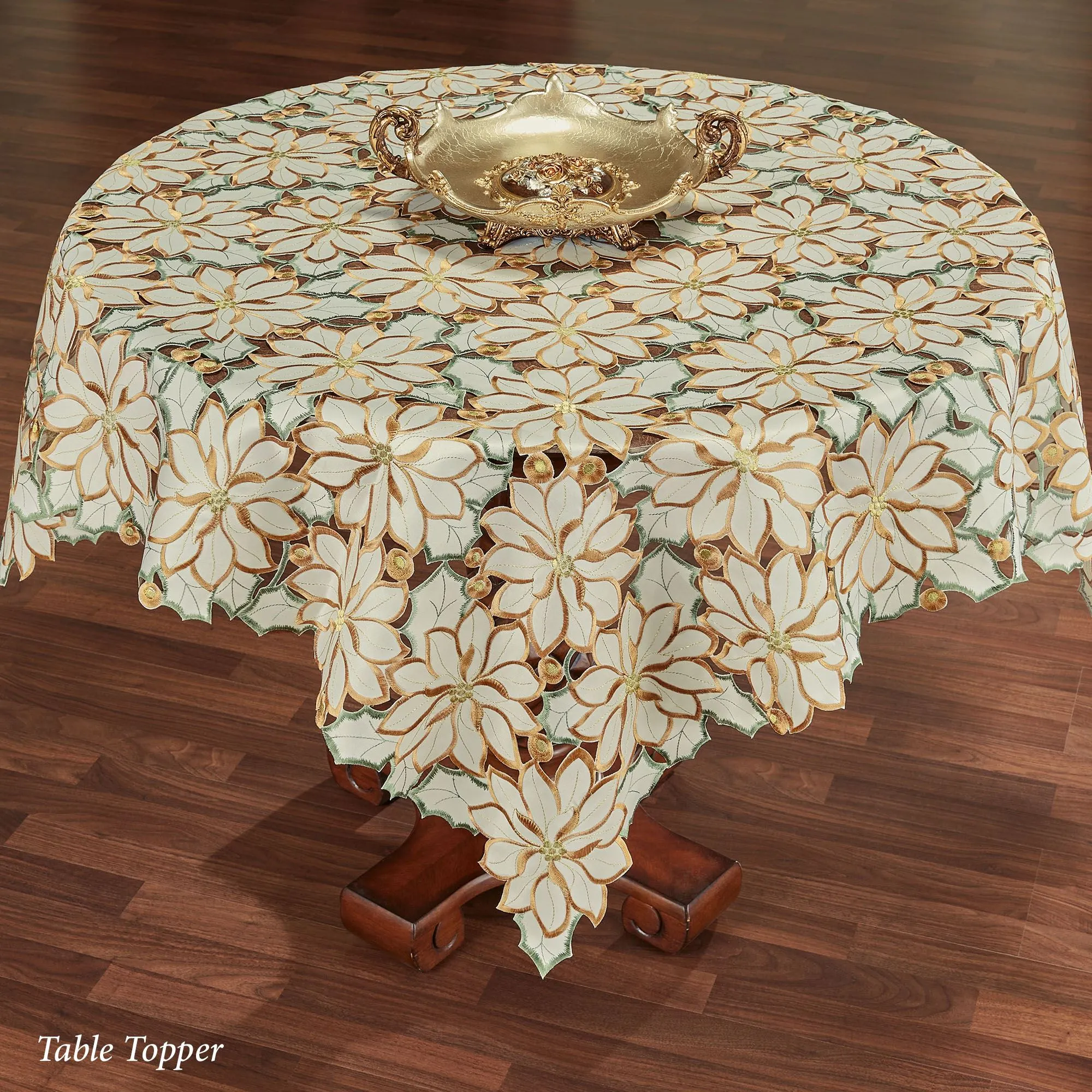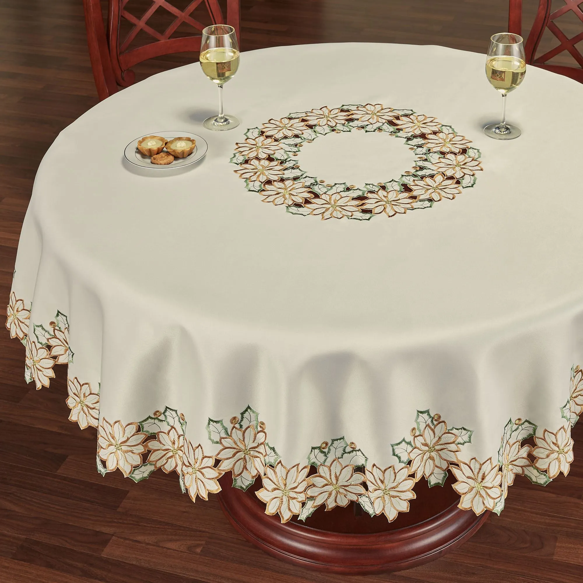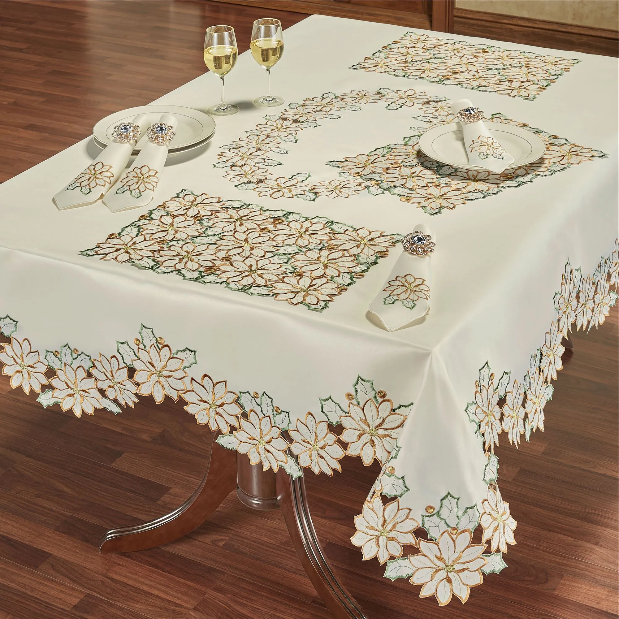 Winter Poinsettia Ivory Cutwork Tablecloth and Table Linens