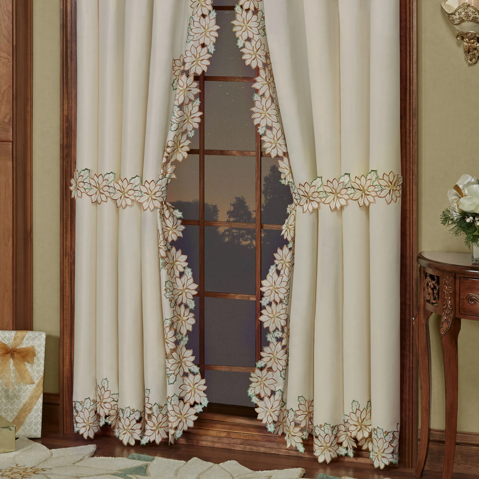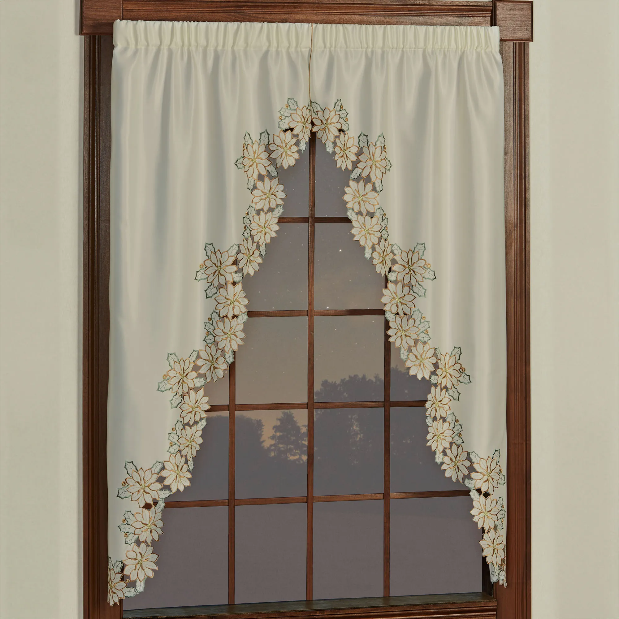 Winter Poinsettia Ivory Cutwork Swag Window Treatment