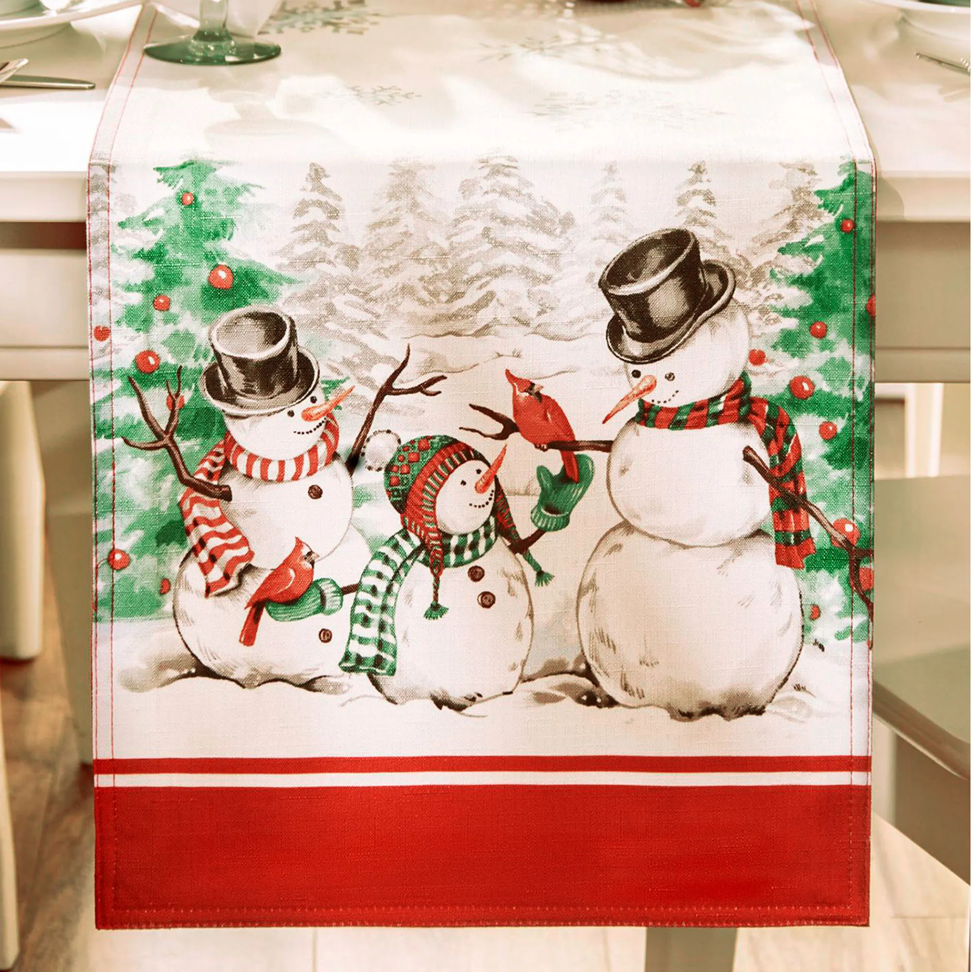 Winters Embrace Holiday Snowman Table Runner and Table Linens