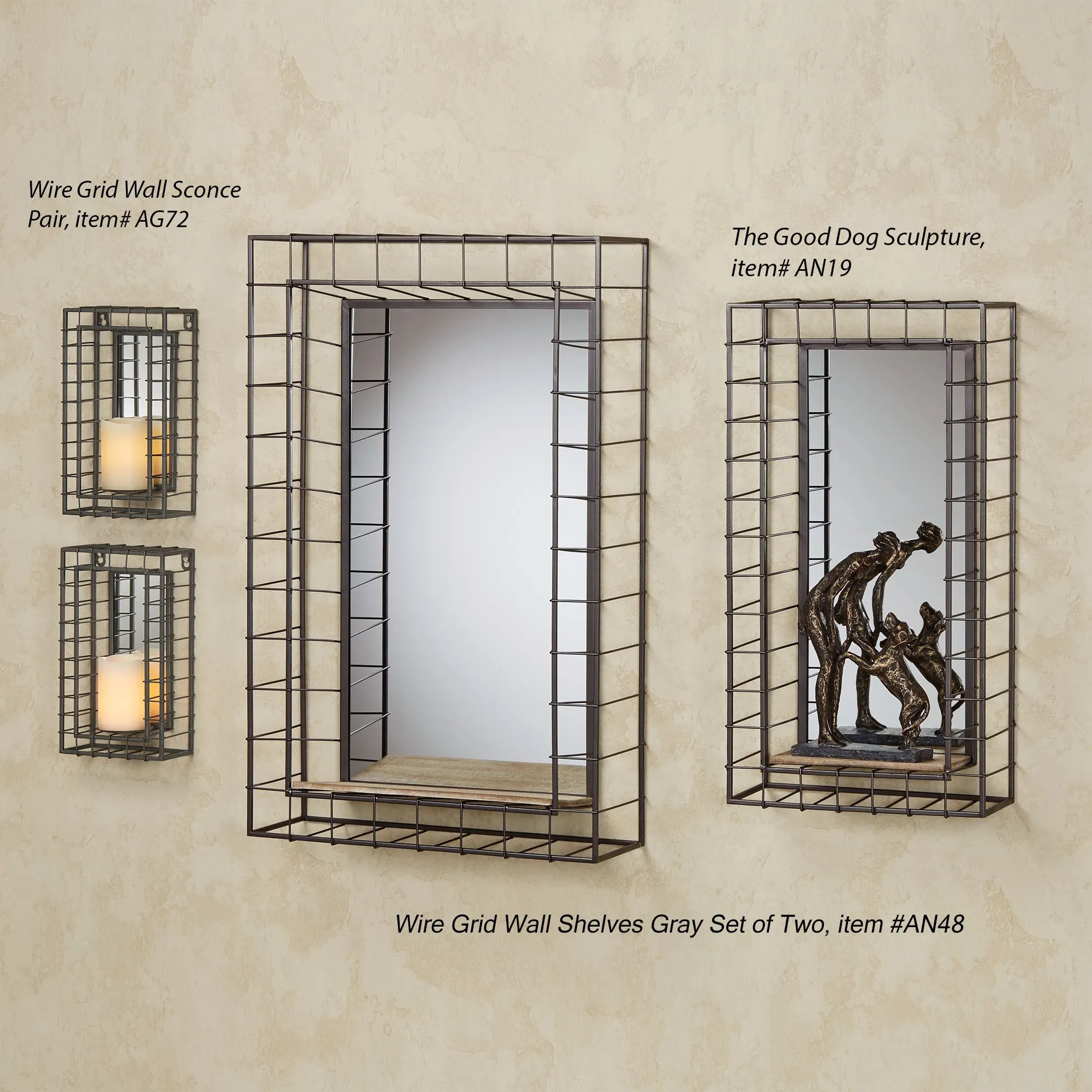 Reflect unique style with the Wire Grid Wall Sconce Pair. Made of metal with a gunmetal gray finish, these openwork candleholders have a mirrored glass backing and will hold your 3" dia. candles. Each is 7"Wx4"Dx12"H.
