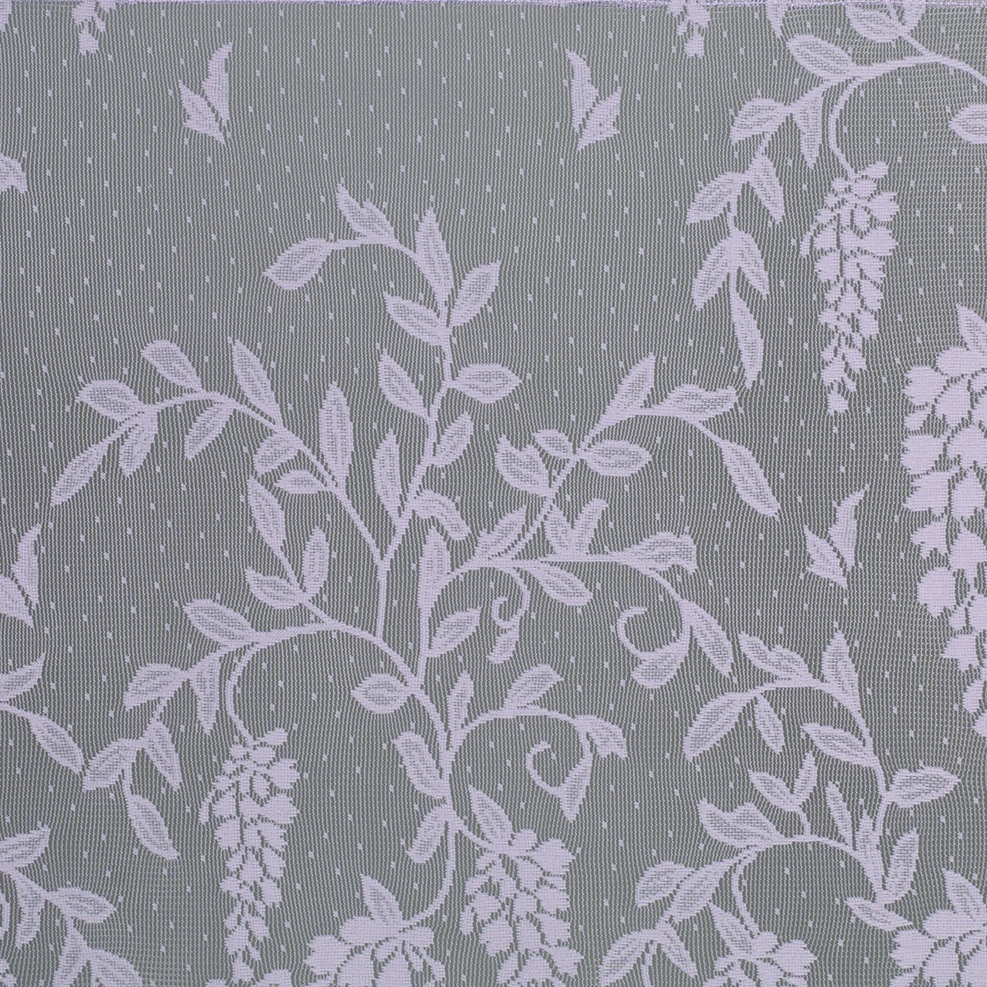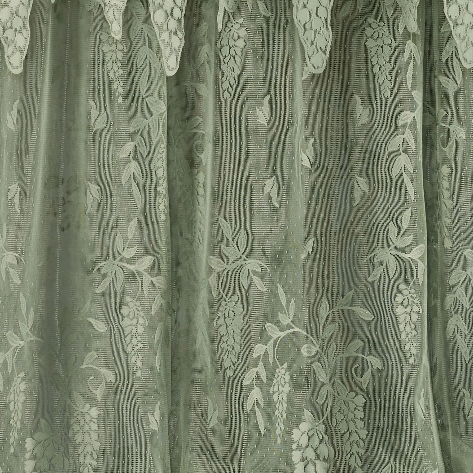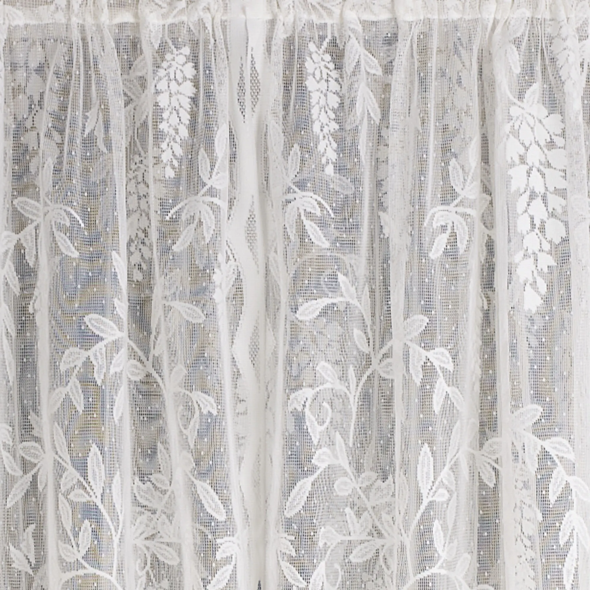 The Wisteria Arbor Lace Balloon Shade and Valances are 100% polyester lace with a floral wisteria design. These delicate lace window treatments have hand-cut edges. Specify Lace Balloon Shade, Lace Swag Valance Pair, or Lace Insert Valance. Rod pocket is 1.5". Machine wash. Imported.