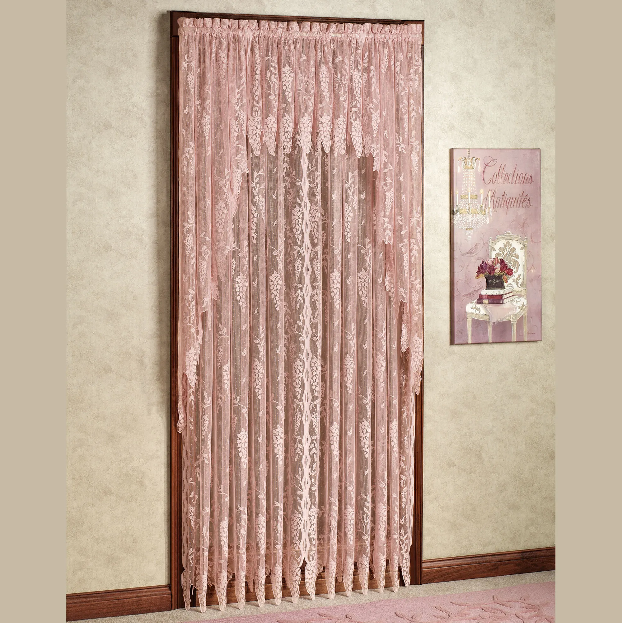 Wisteria Arbor Lace Curtain Panel in Rose Color